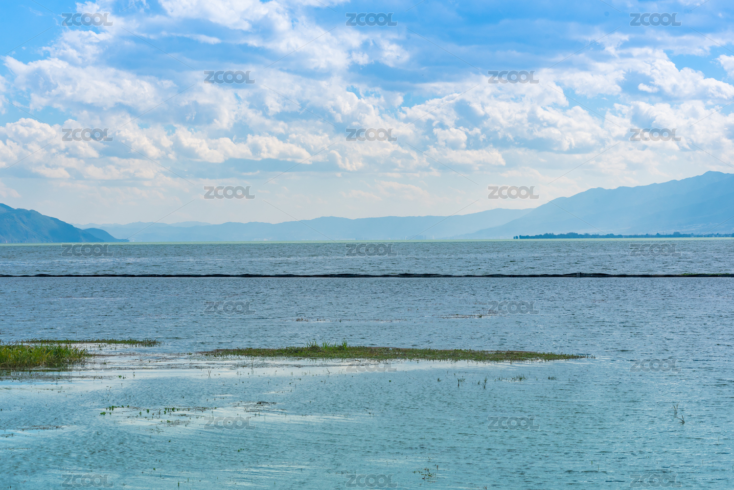 中国云南省大理市,蓝天白云下的苍山洱海自然风光