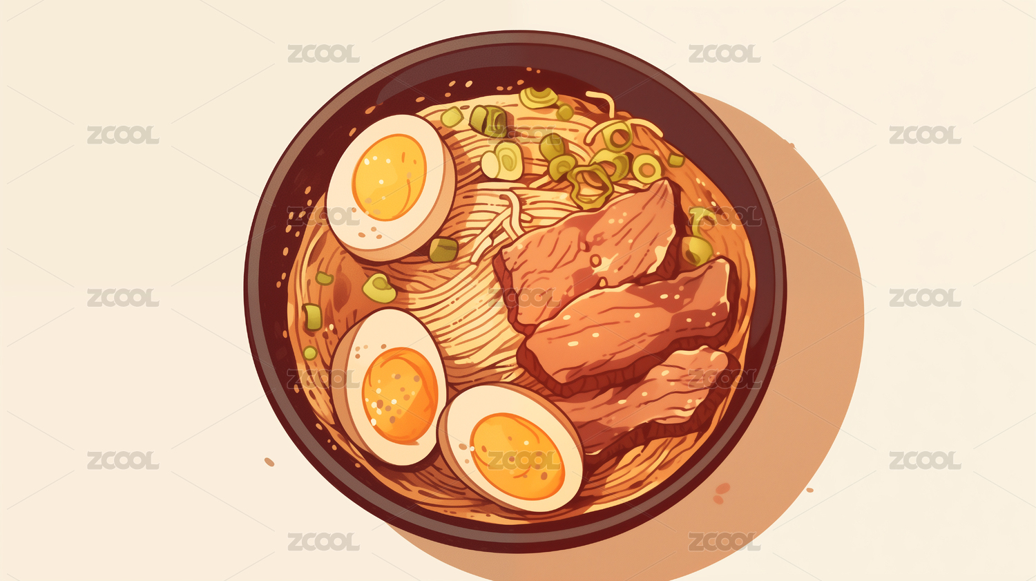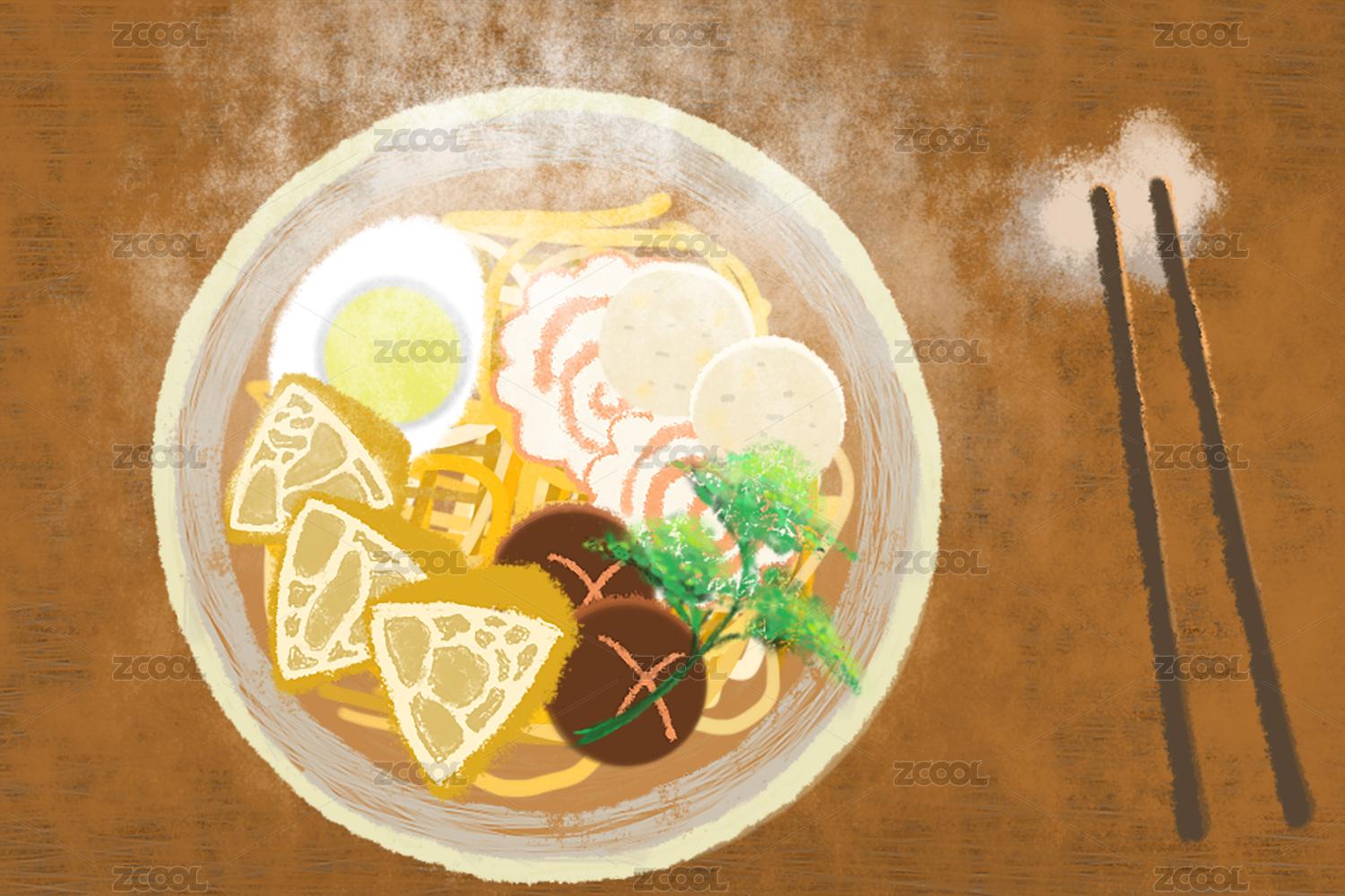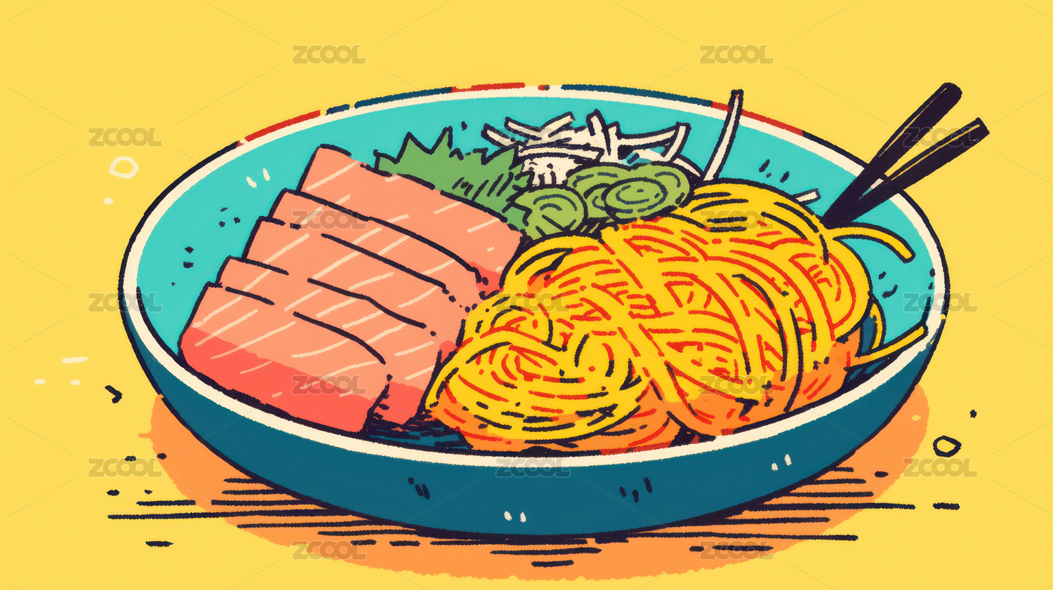 手绘卡通牛肉拉面插画