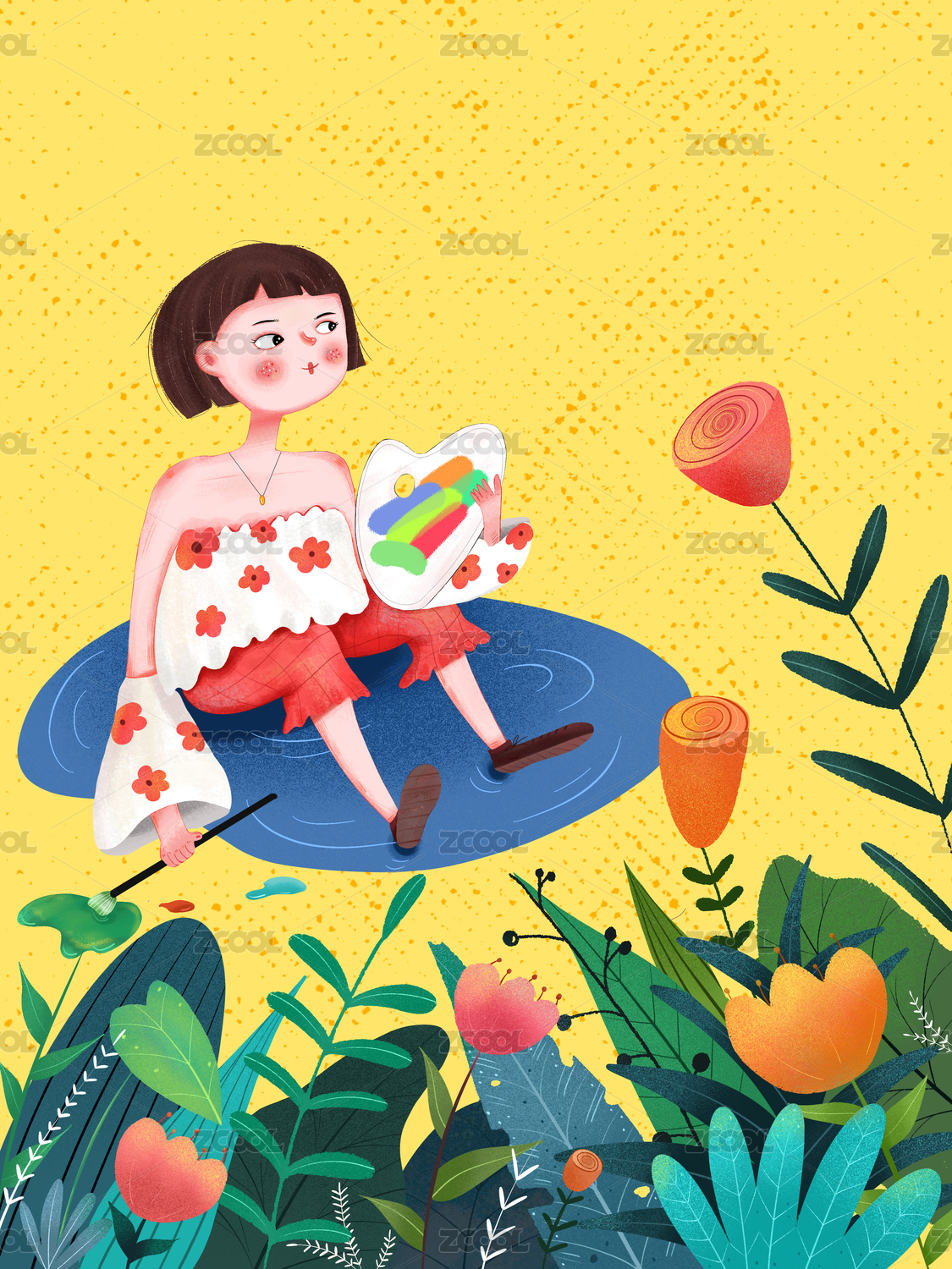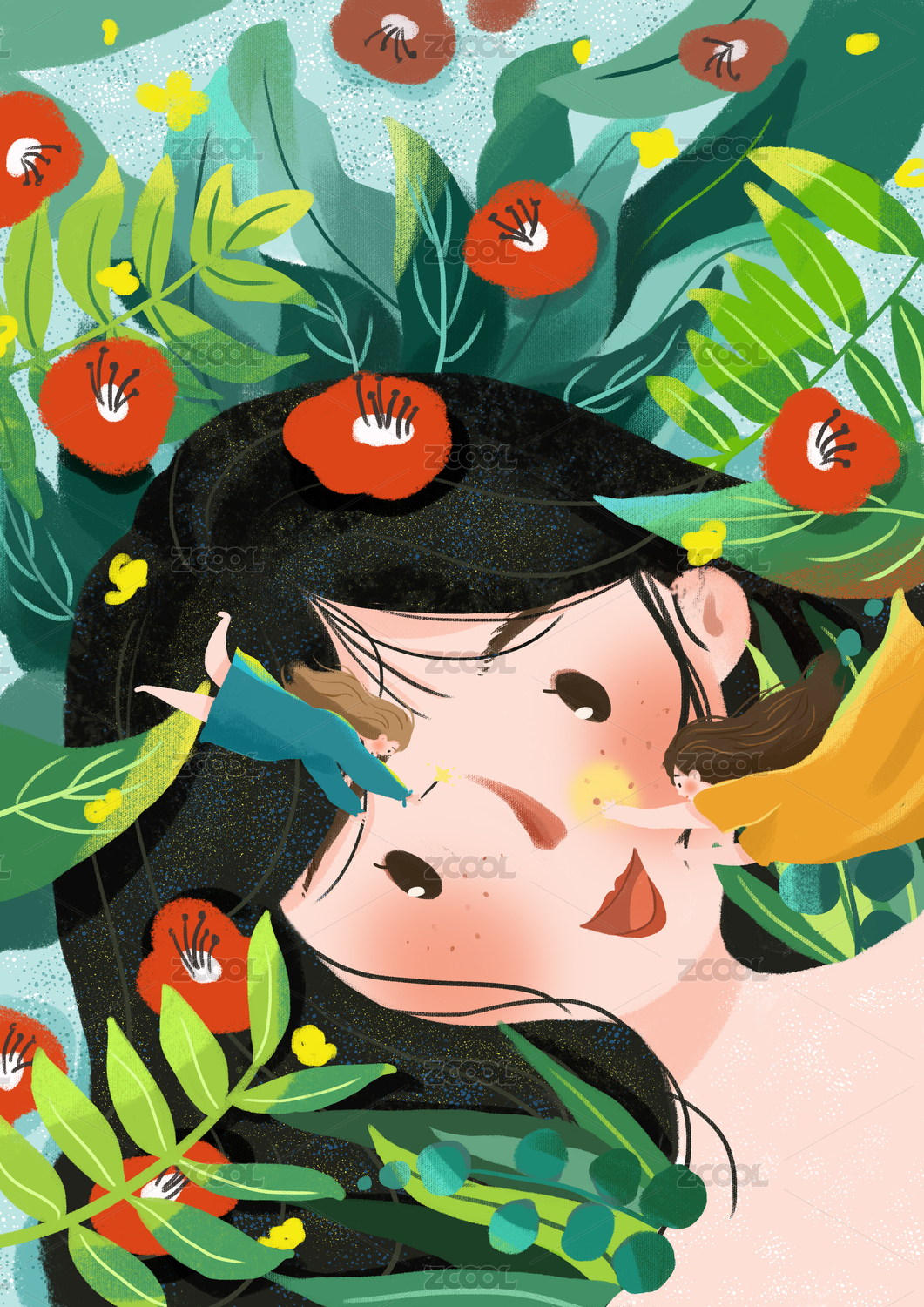 可爱少女清新插画