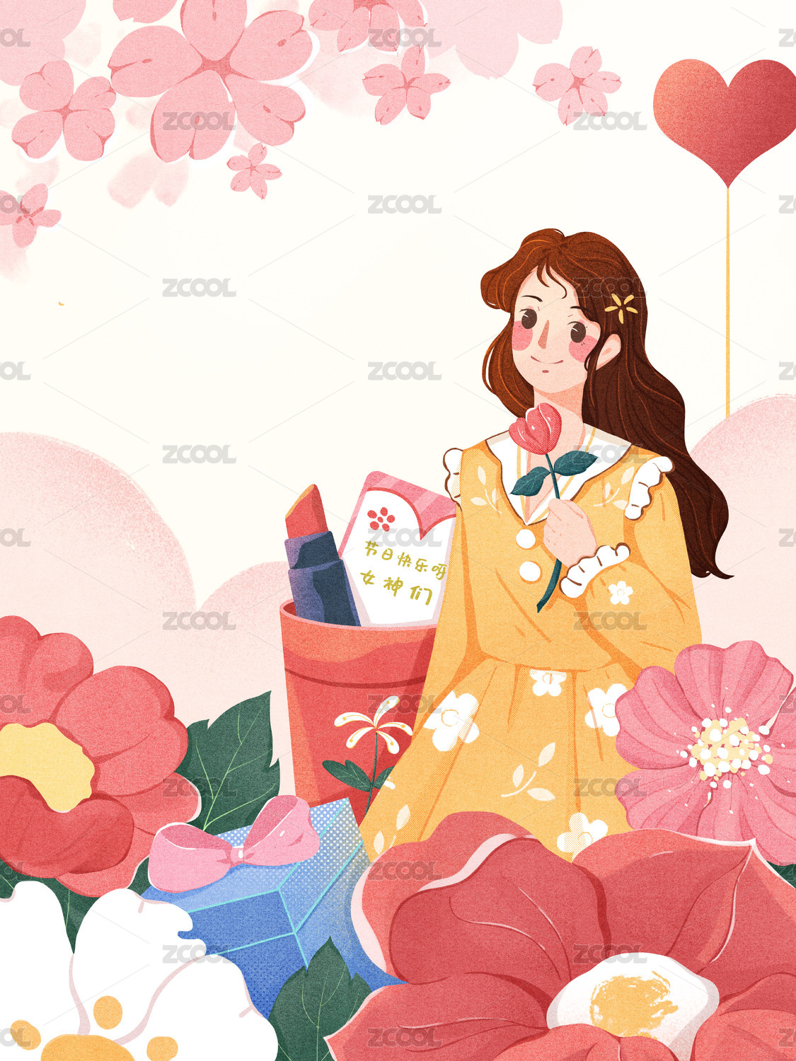原创三八节女神节插画