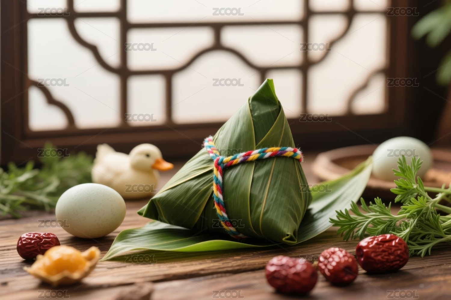 端午节粽子放在蒸笼里,搭配雄黄酒