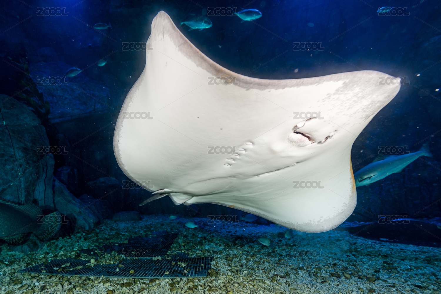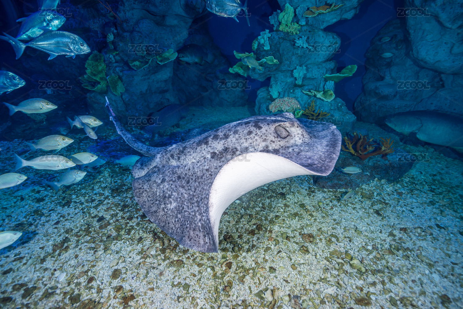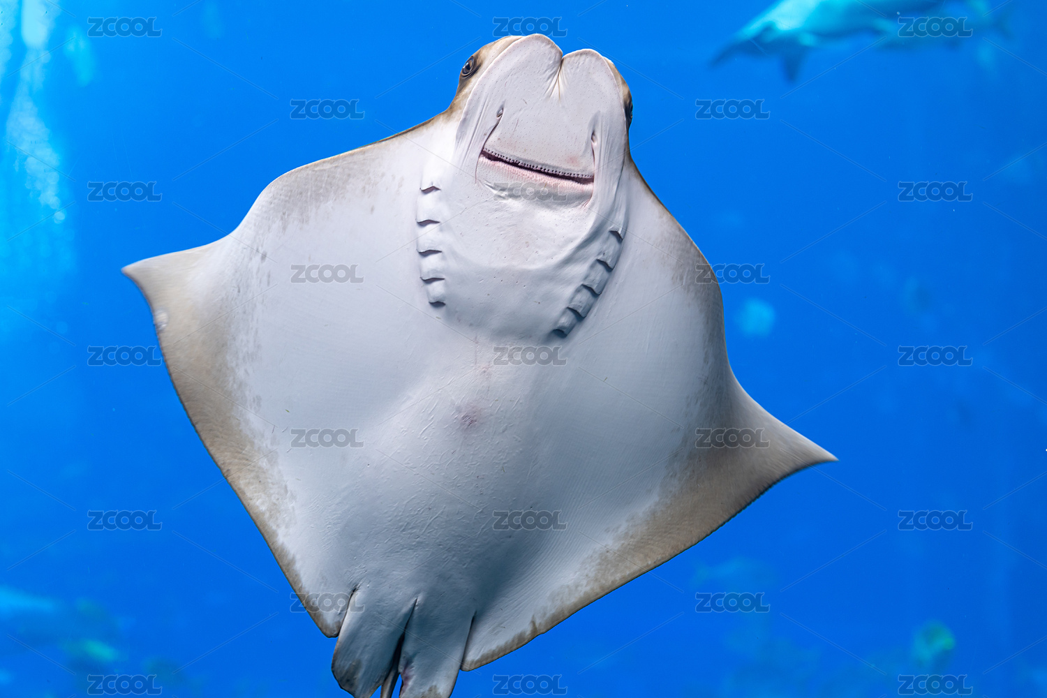深蓝色的大海中,一条鳐鱼缓缓游过