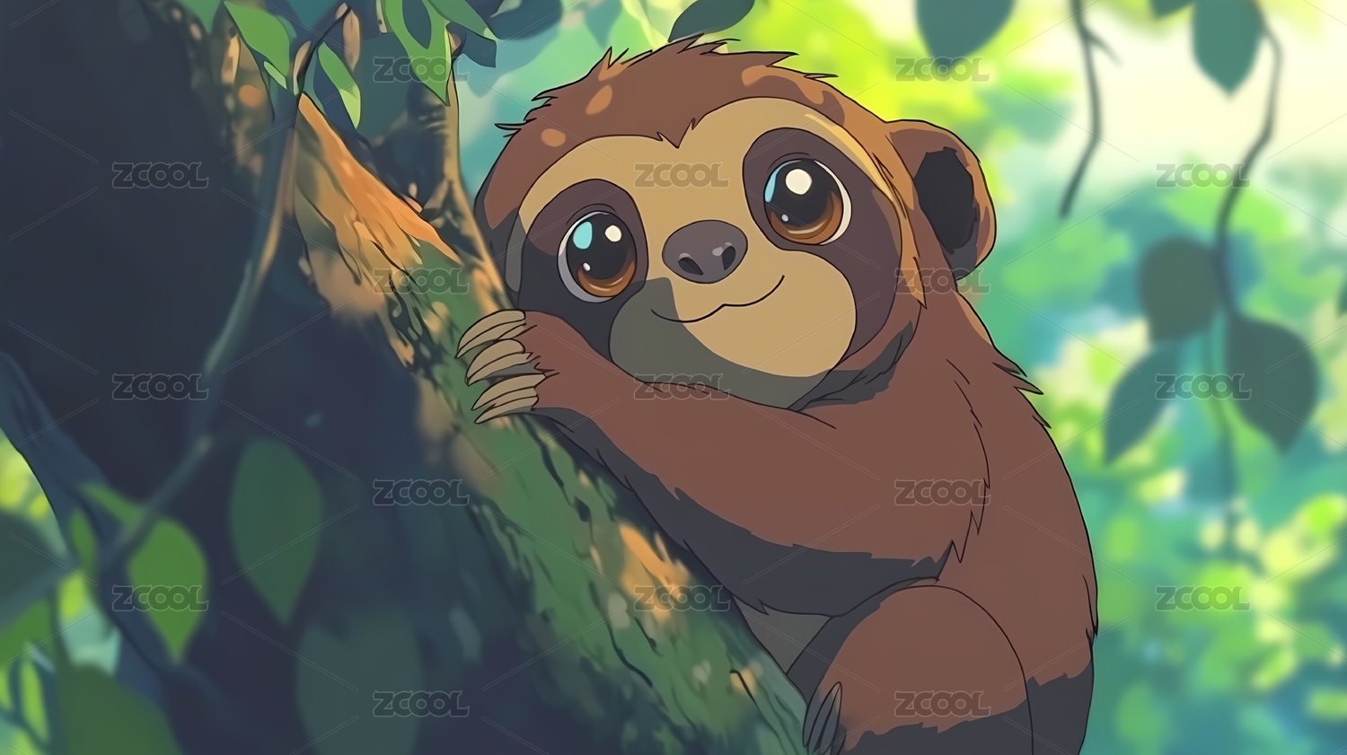 适量风格卡通雨林树懒头像插画壁纸