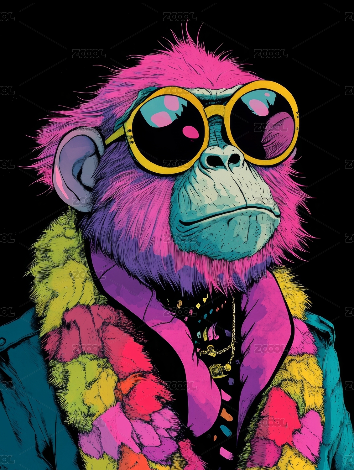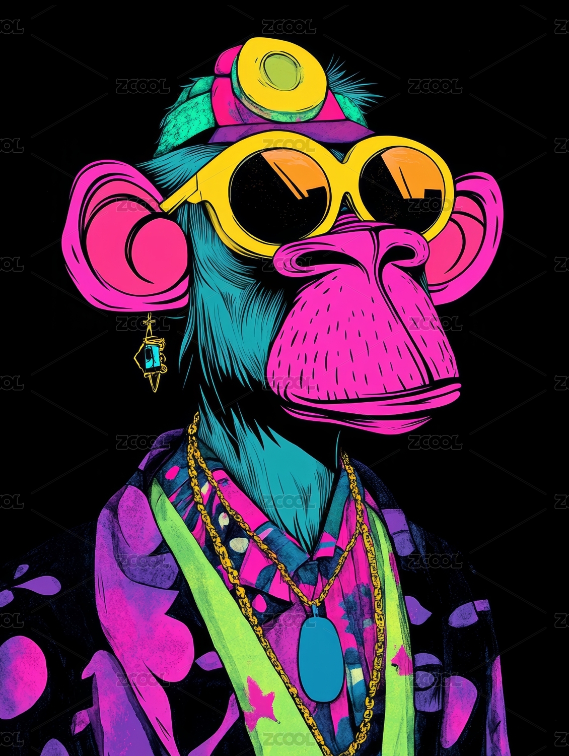 猴子拟人酷炫潮流插画