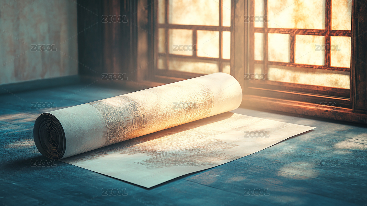 木质,桌子,卷轴,纸张,空白,古典,复古,文艺复兴,书写,历史