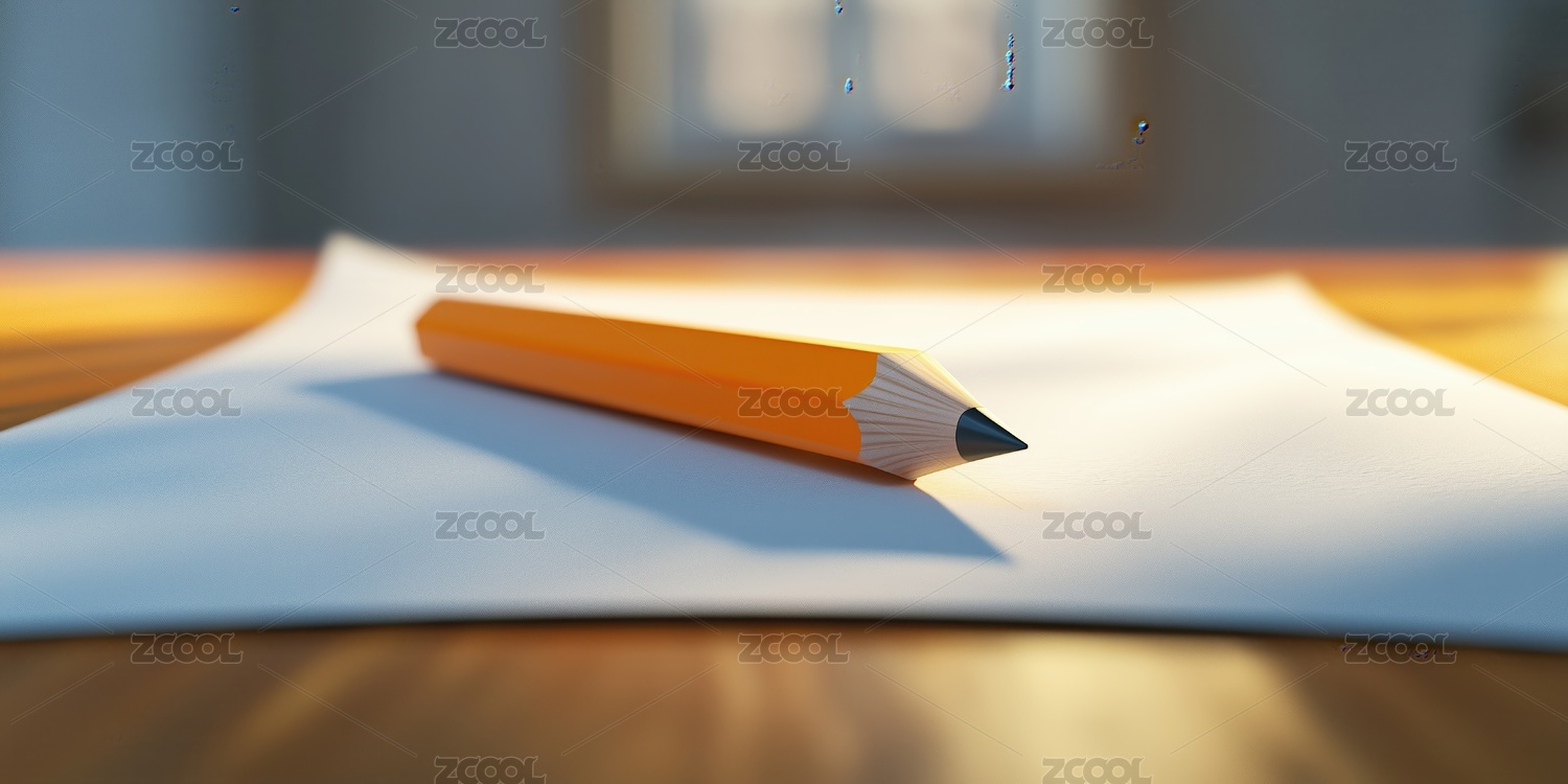 清新明亮纯色桌面上铅笔和纸3D立体插画
