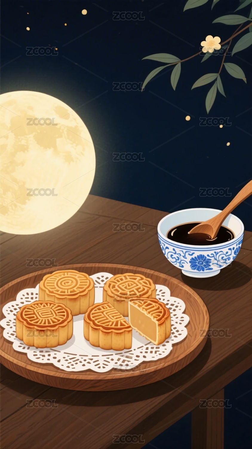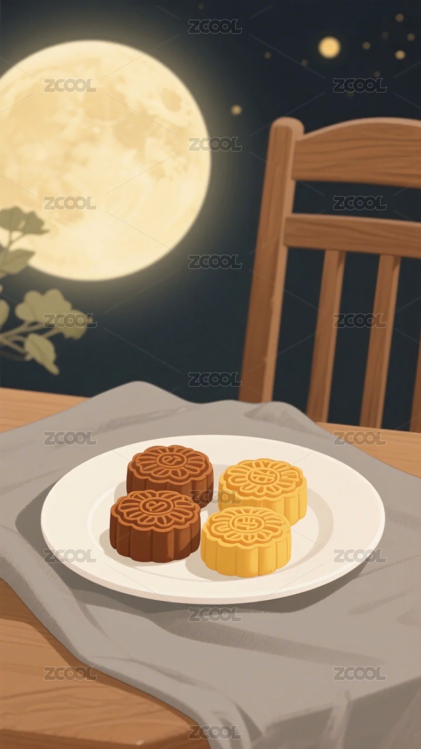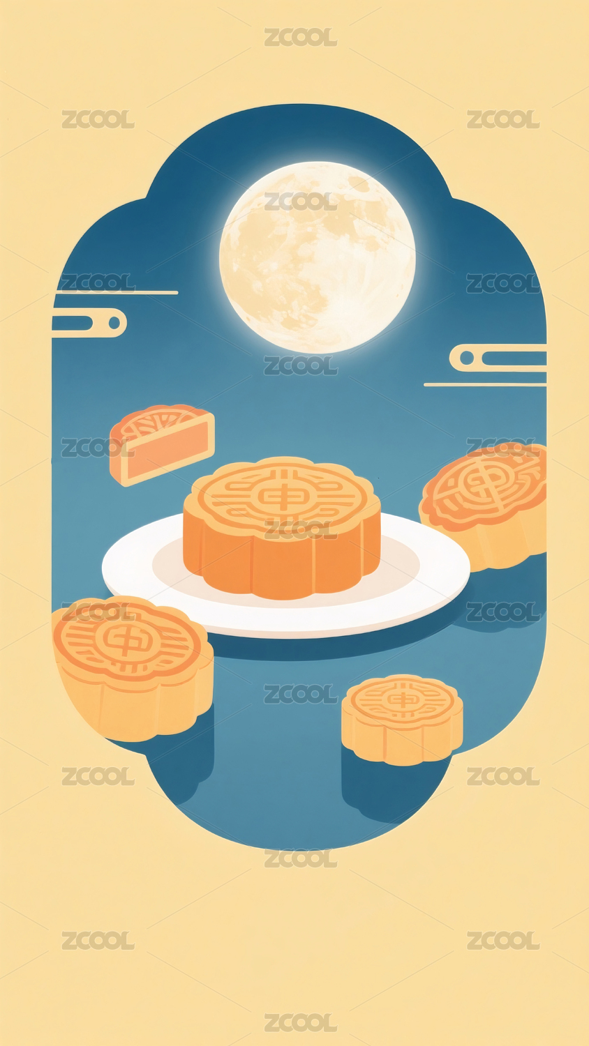 中秋节,月亮,圆月,赏月,桂花,月饼,瓷盘,扁平风,矢量,螃蟹
