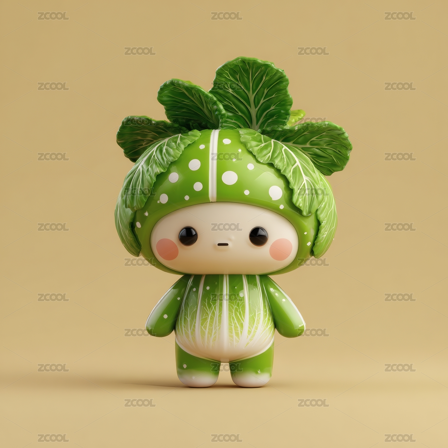西兰花,卡通,可爱,萌,蔬菜,绿色,食物,头像,3D渲染,插画