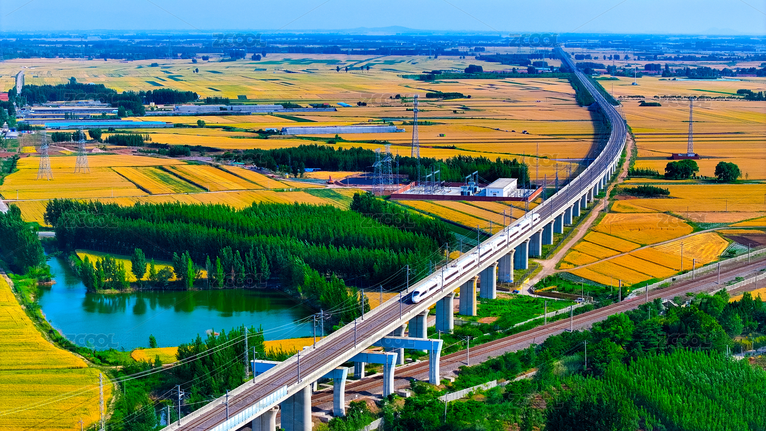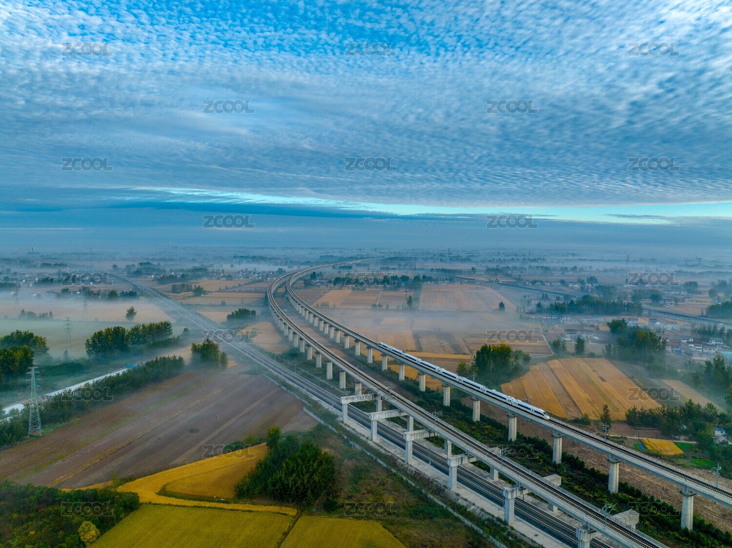 雾气,晨雾,稻田,水稻,高铁,火车,列车,农田,丰收,成熟