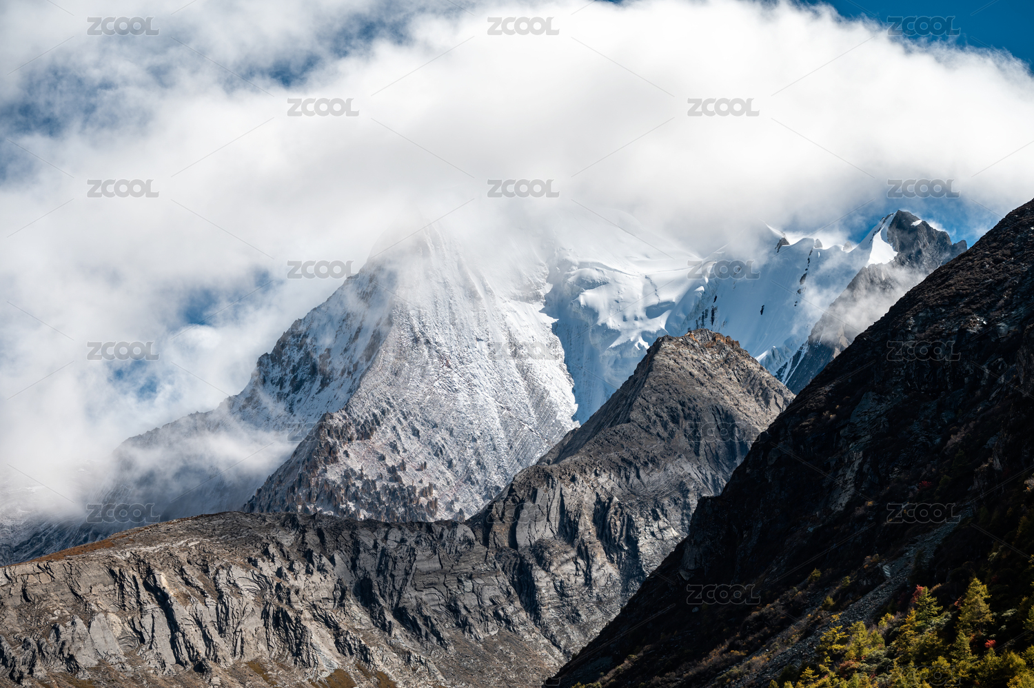 稻城亚丁 被云遮挡的雪山央迈勇