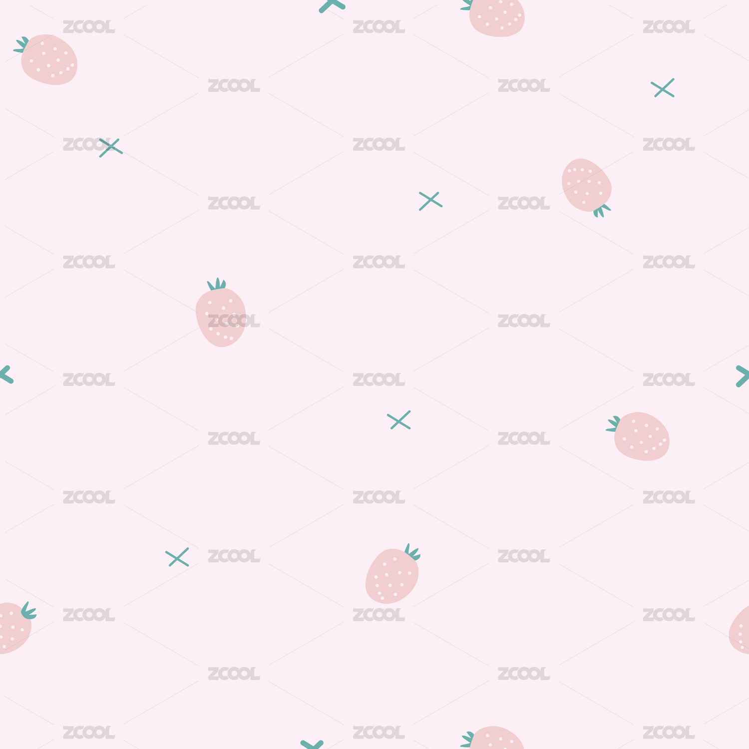 清新可爱卡通草莓时尚无缝印花背景