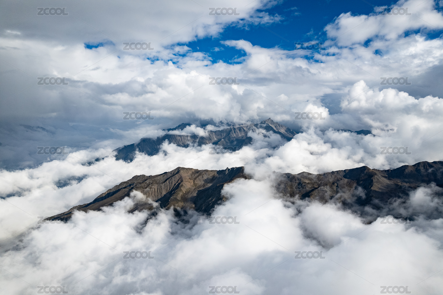 中国西藏萨普神山风景区耸立在云海中的雪山