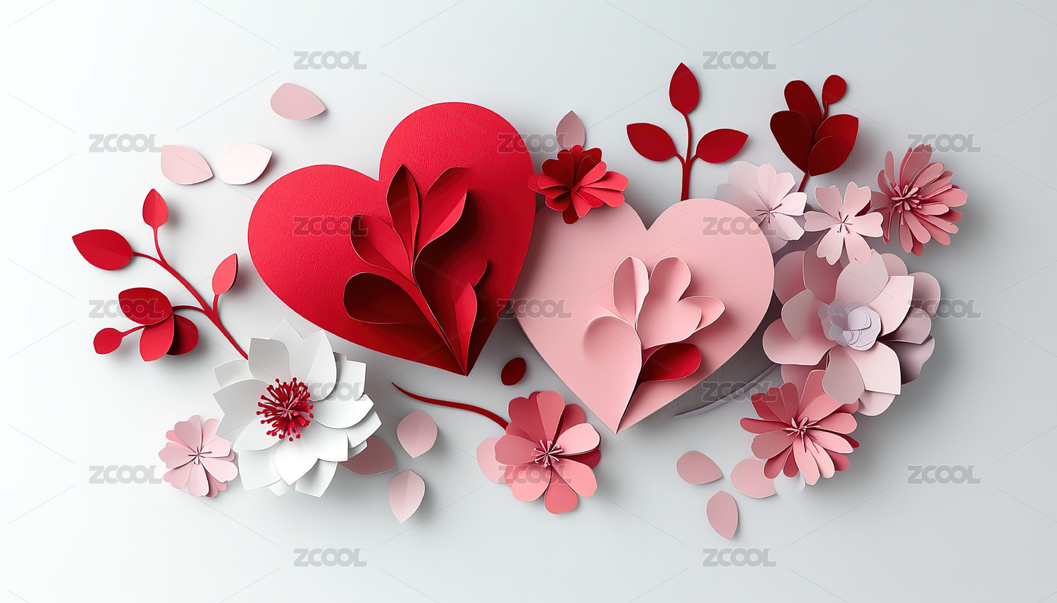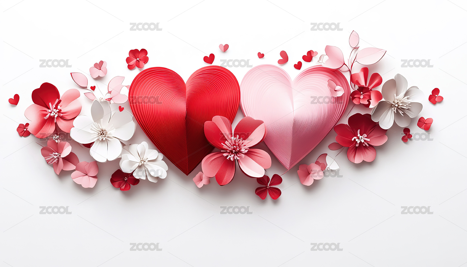 粉色背景下的爱心玫瑰和蝴蝶情人节背景