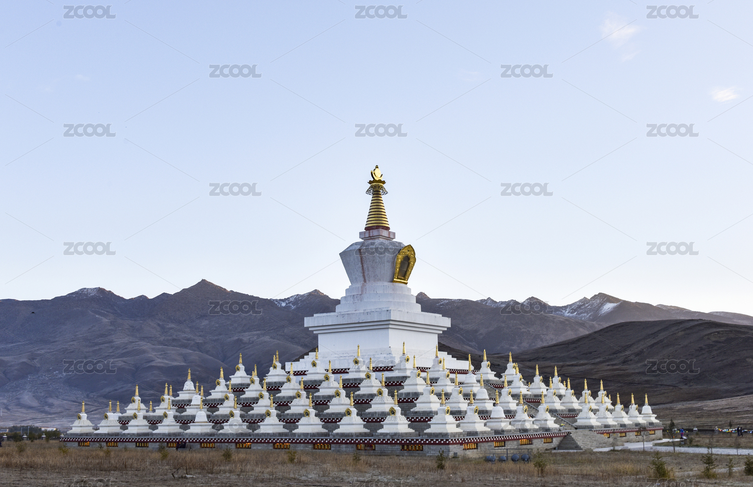 中国四川稻城亚丁的稻城白塔,又名尊胜塔林