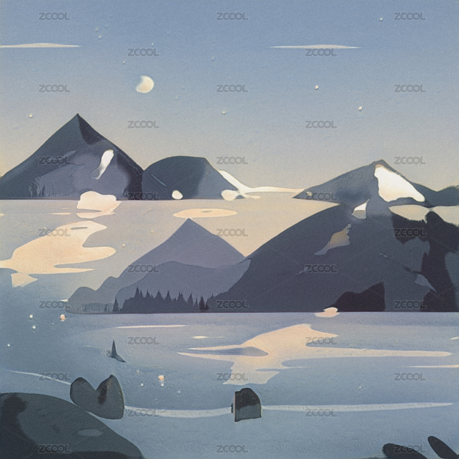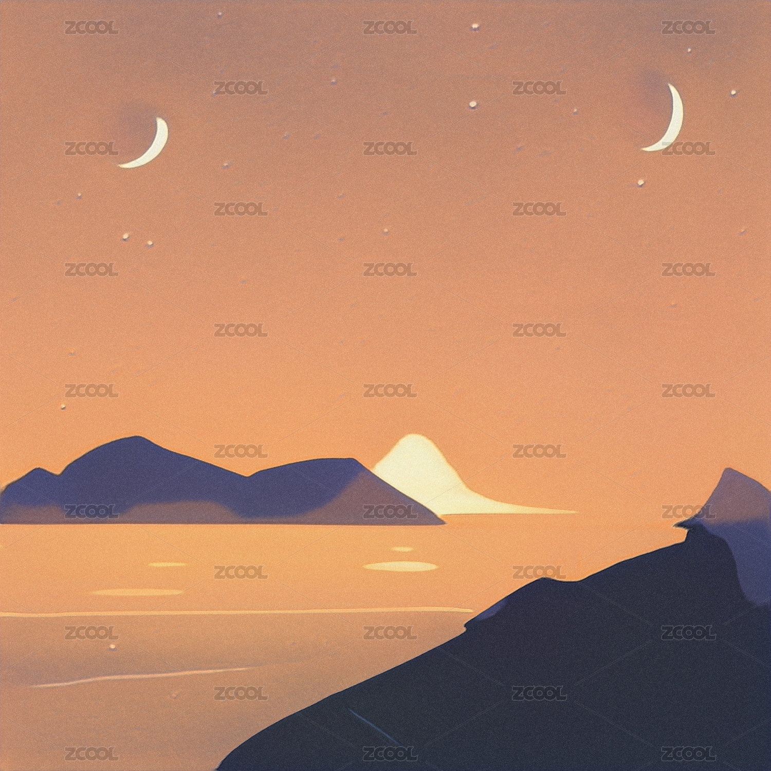 插画,风光,自然,写实,天空,山脉,河流,河,大海,海洋