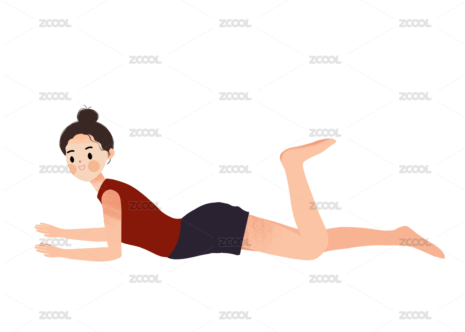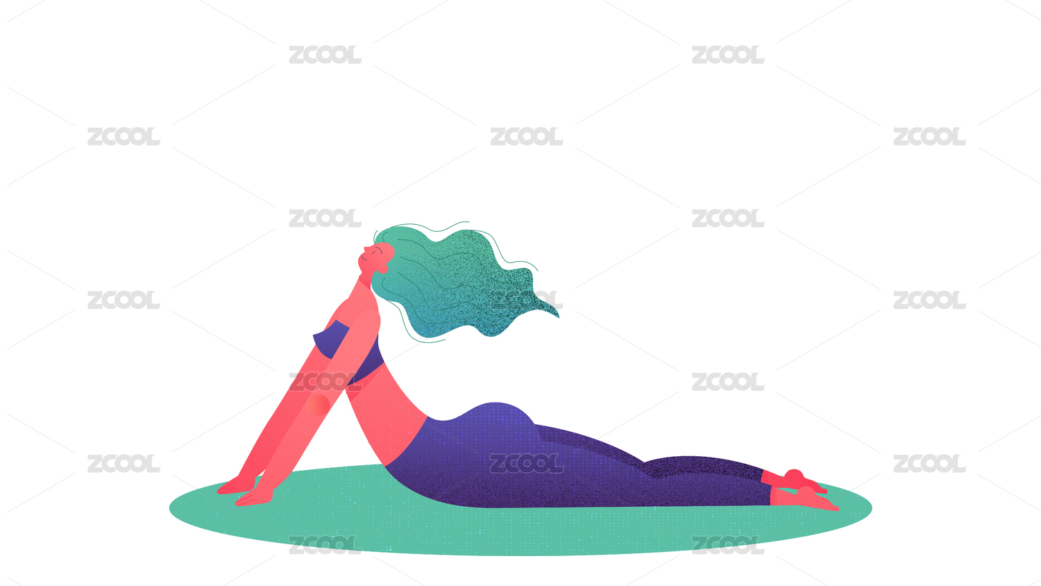 女性瑜伽姿势之上犬式纹理插画