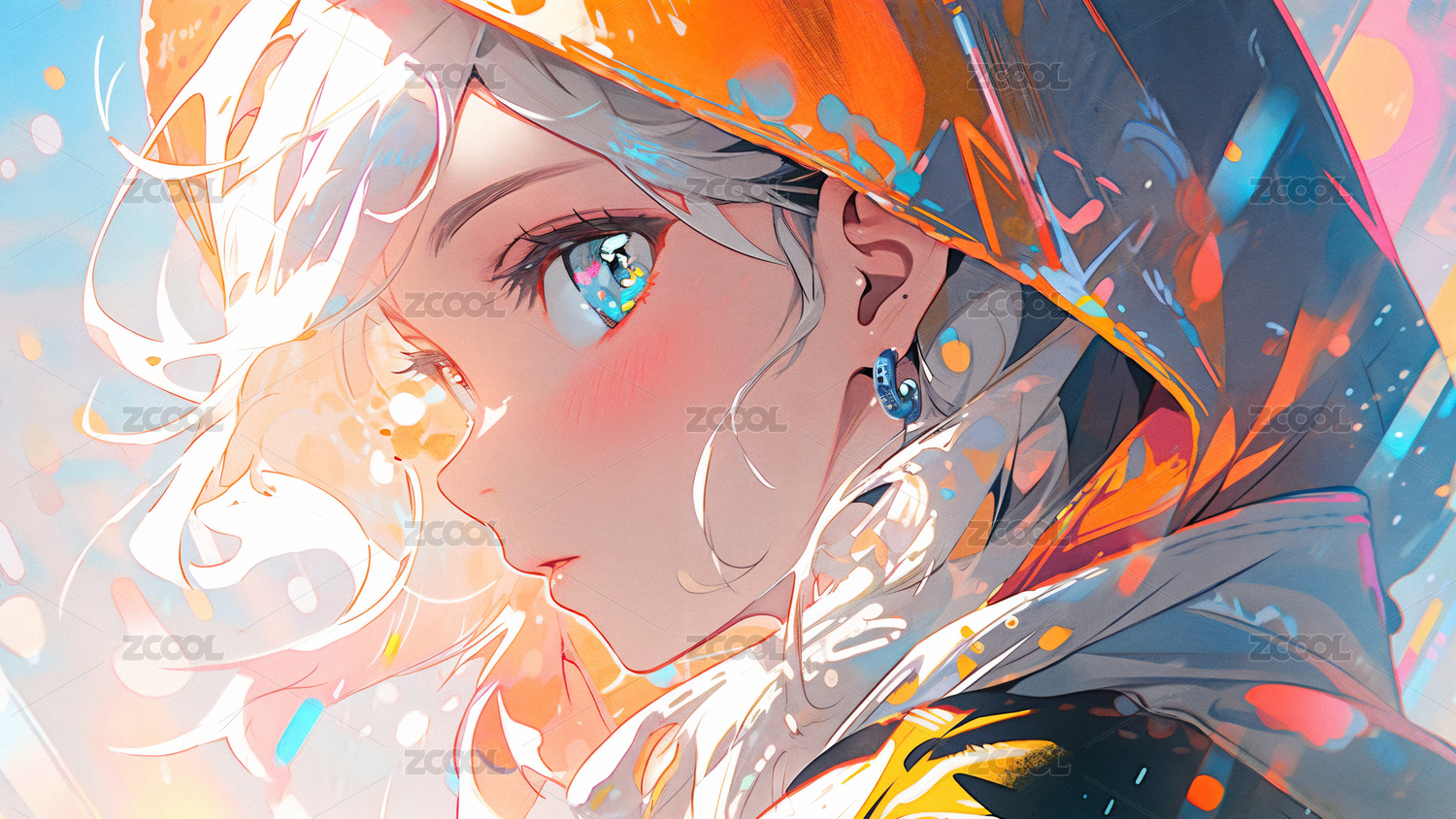 可爱的动漫女孩新海城风格唯美风格壁纸背景