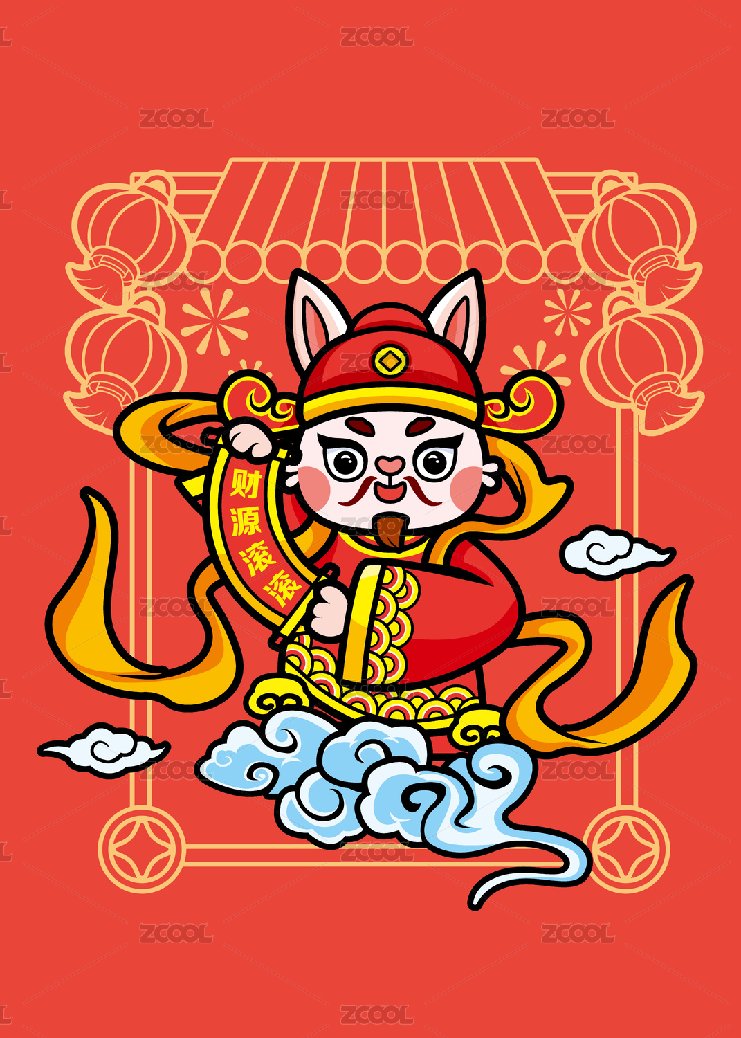 五路财神西路关羽龙年喜庆吉祥国风卡通