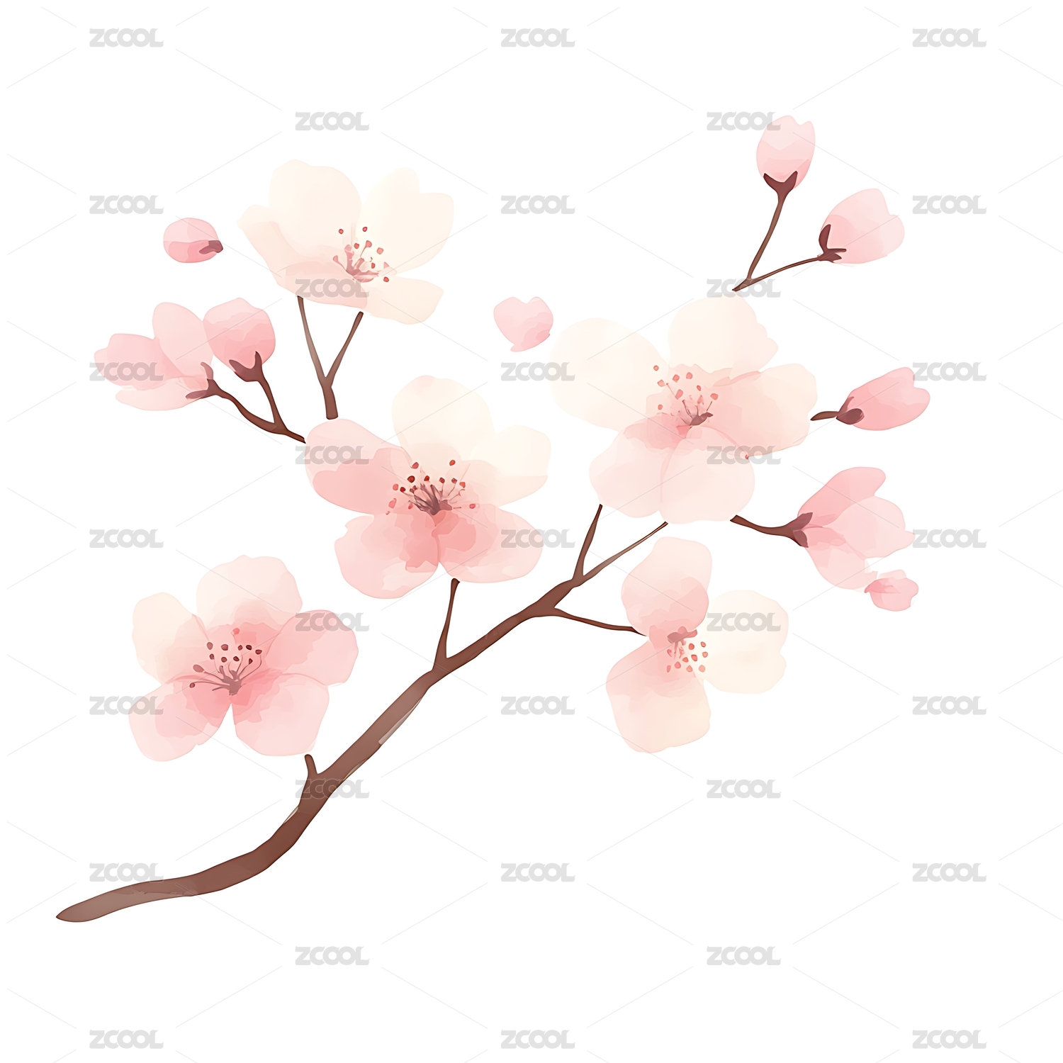 樱花元素水彩写实插画