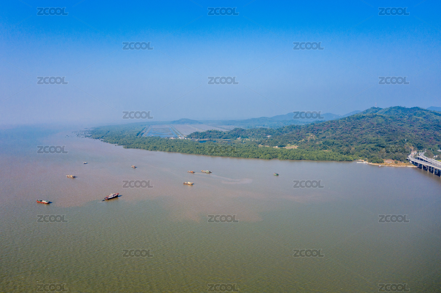 航拍中国广东珠海淇澳岛淇澳大桥风光