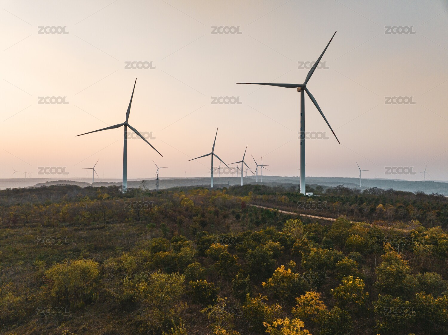 城市郊外的风力发电风车与自然风光