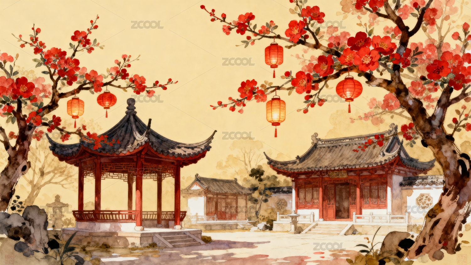 古建筑,中国风,亭台楼阁,传统建筑,园林,意境,写意,古风,祥云,古色古香
