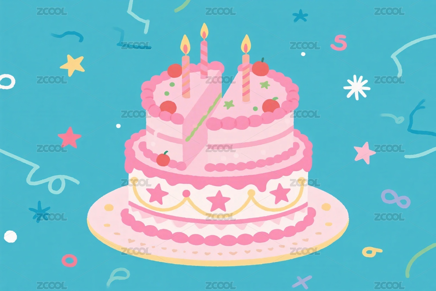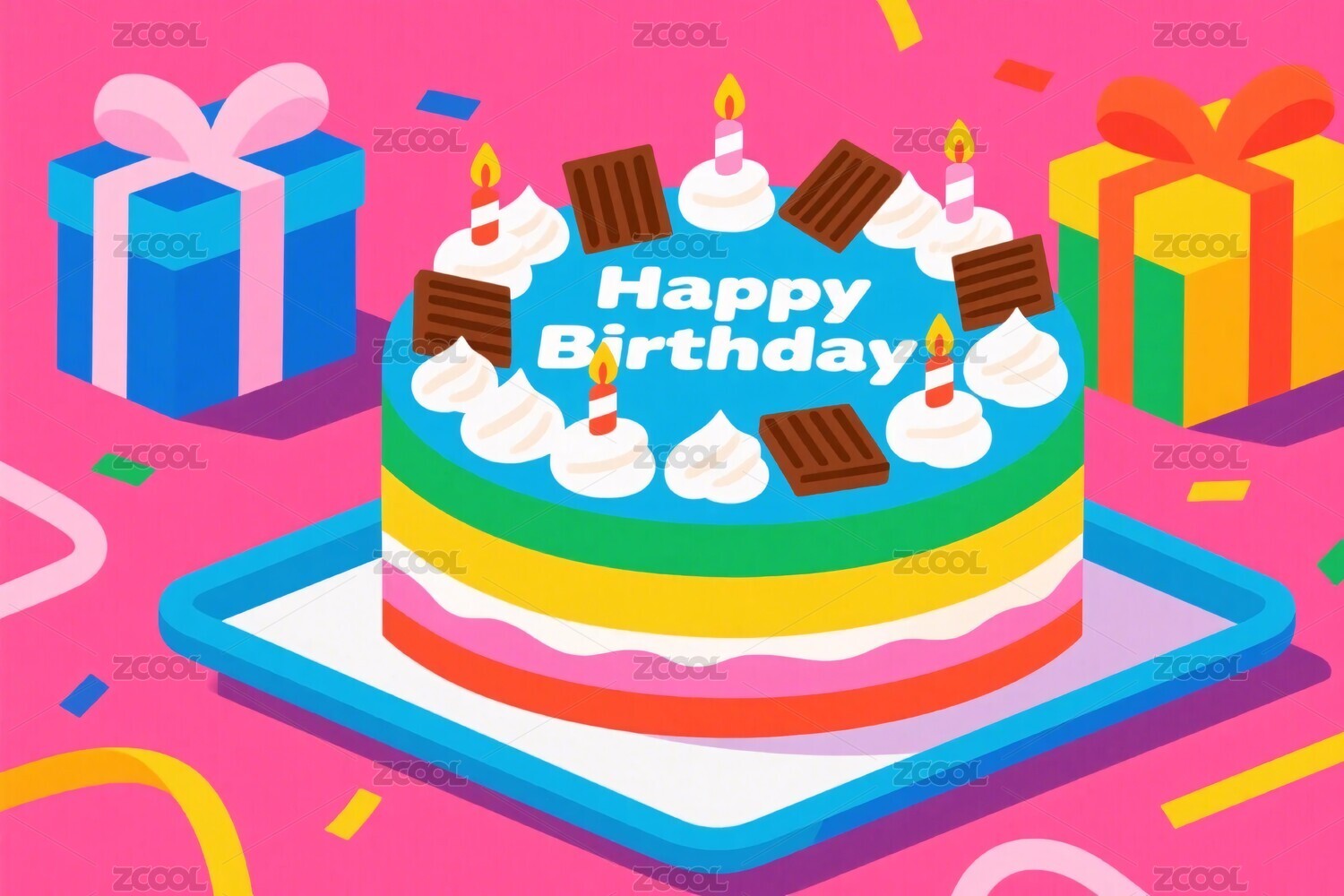 卡通生日快乐生日蛋糕活动矢量背景插画