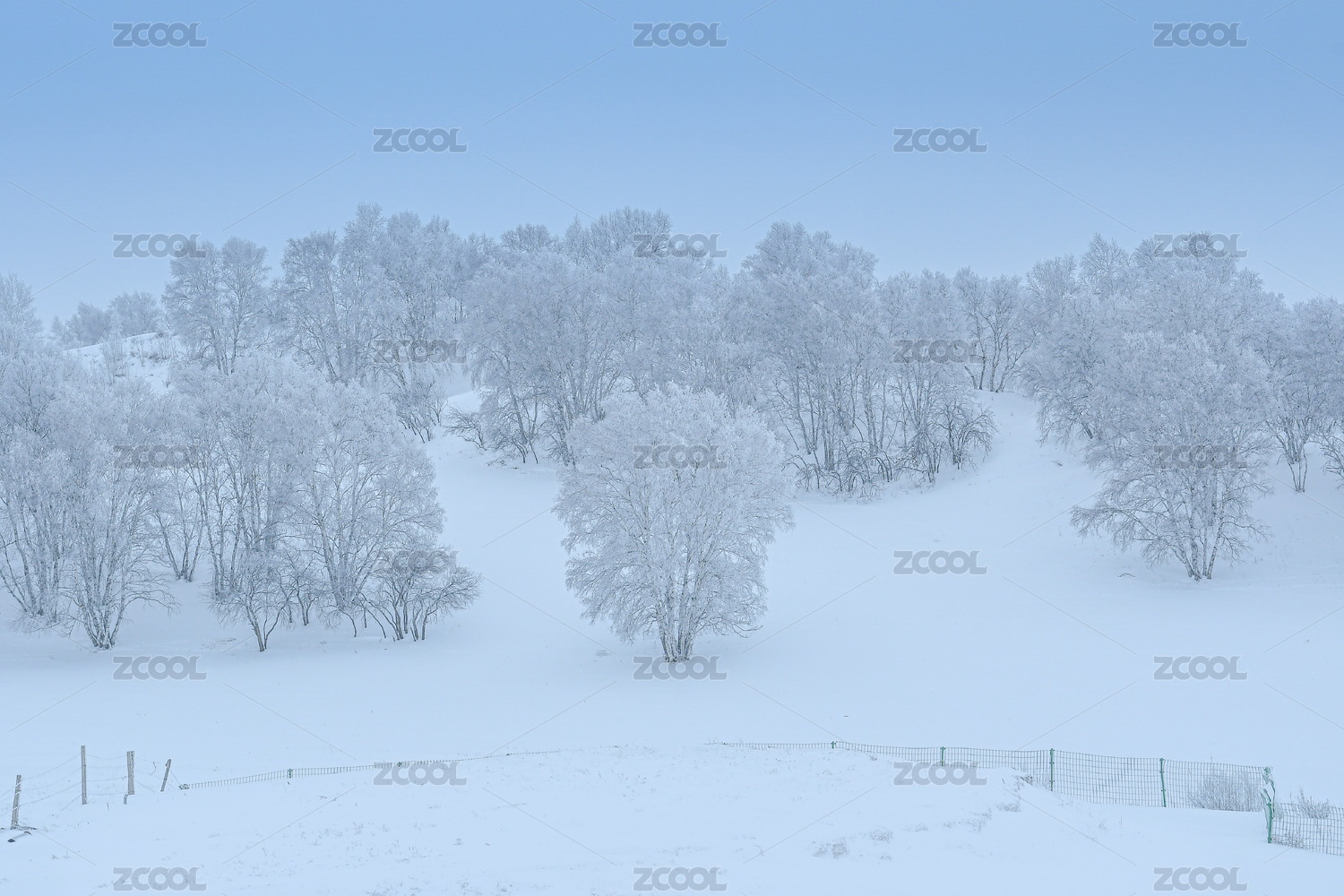 中国新疆伊犁的库尔德宁景区的冬季自然风光