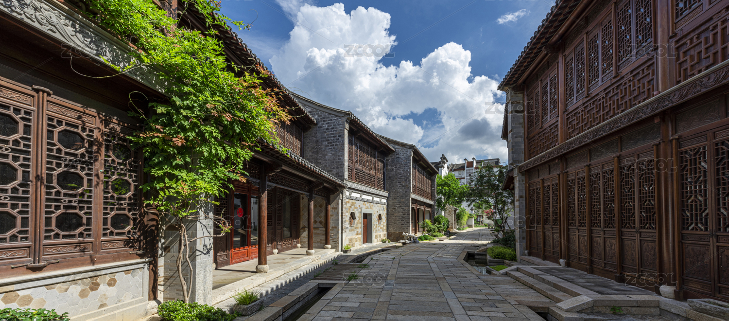 江南粉墙黛瓦砖砌古建筑群生态风光