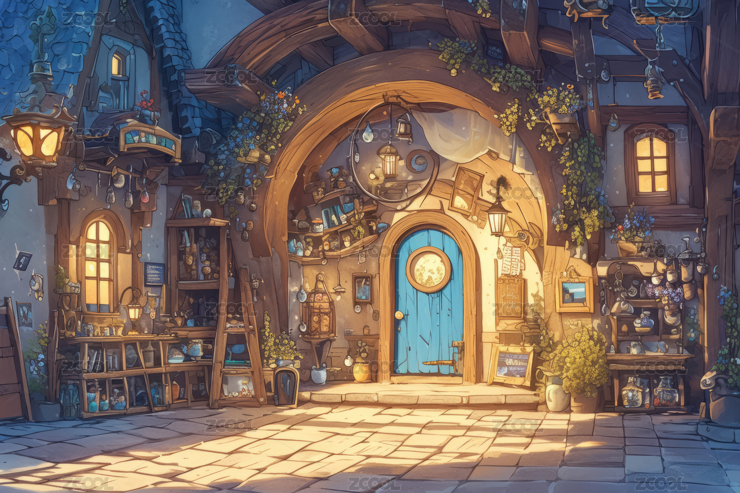 神秘魔法药剂实验室夜景