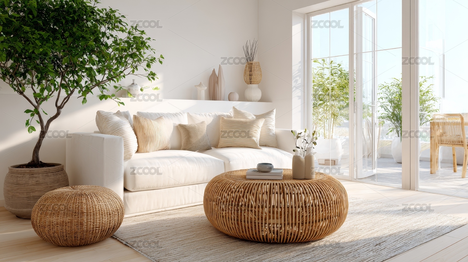 明亮通风的室内客厅场景