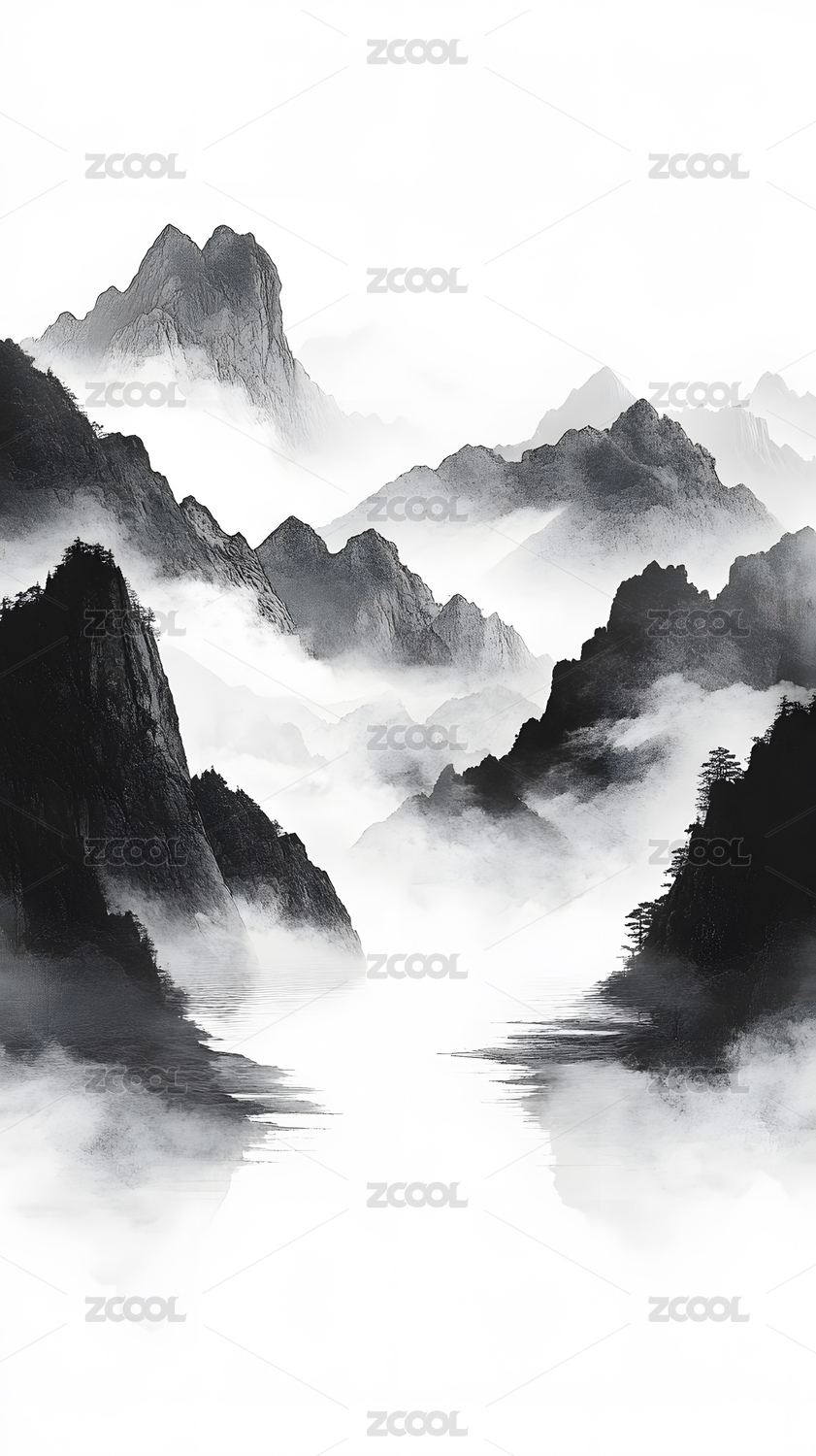 中国风高山水墨画插画