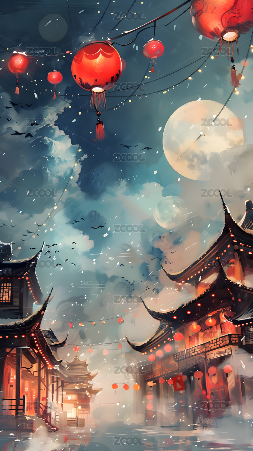 无人,天空,地形,插画,风景,多色的,剪影,季节,月亮,户外