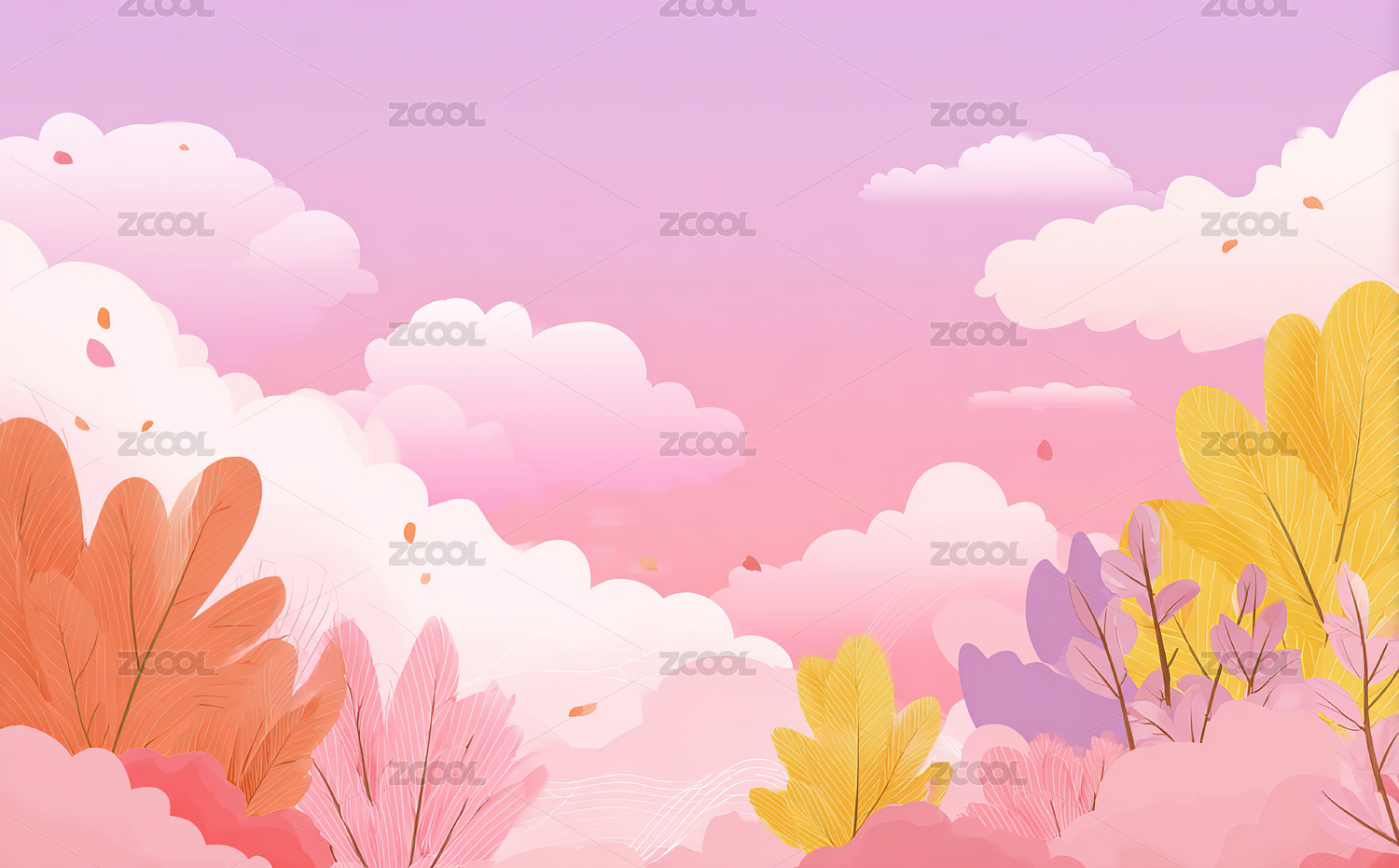 立秋节气户外旅行自然风景处暑卡通唯美插画
