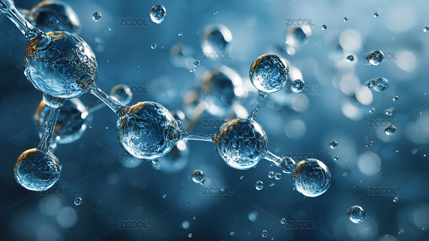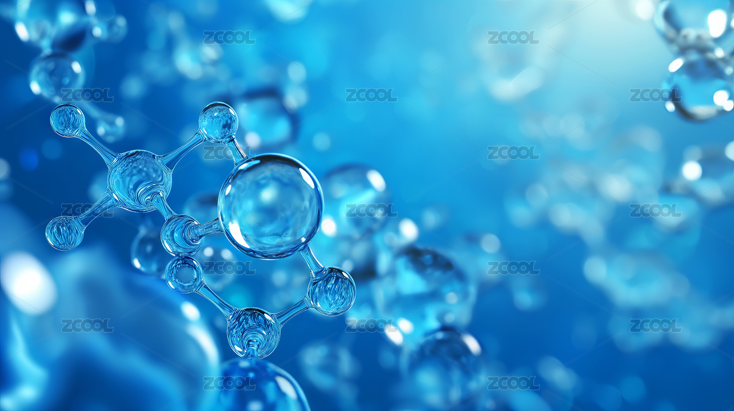 化妆品保湿水分子精华液体气泡背景3d渲染