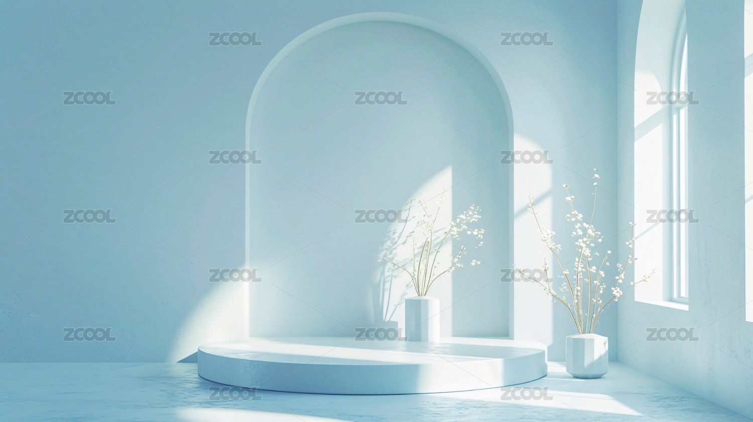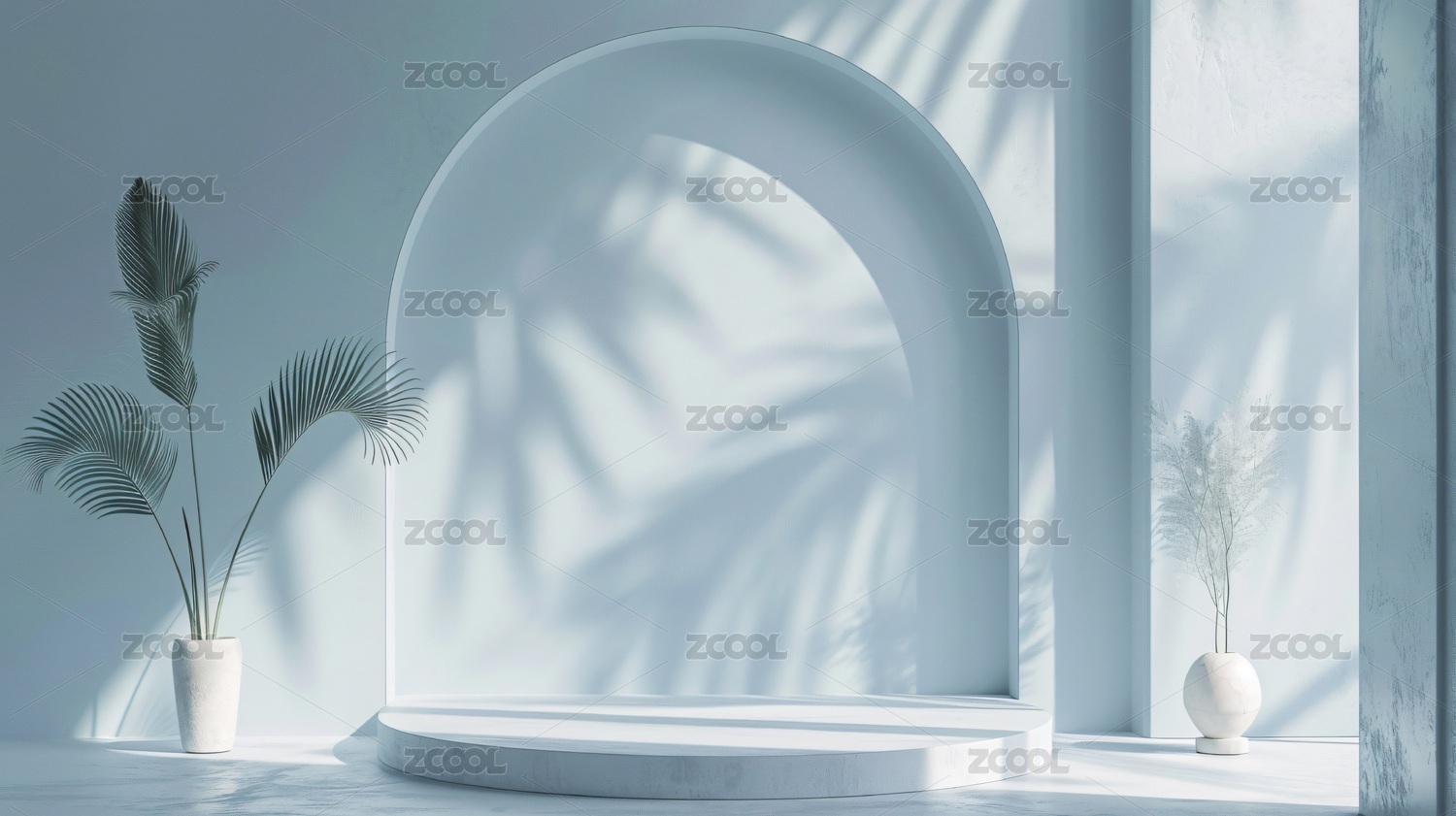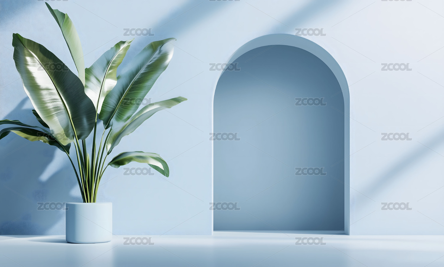 清新,蓝色,植物,蕨类,3D,静物,拱门,夏天,绿植,空间