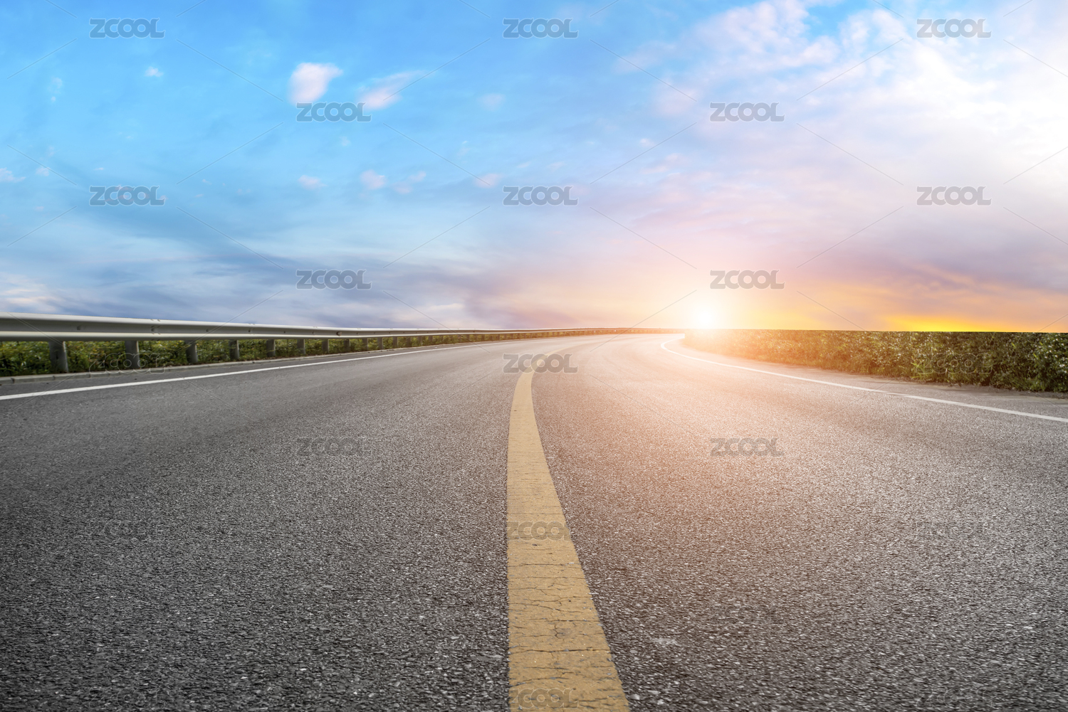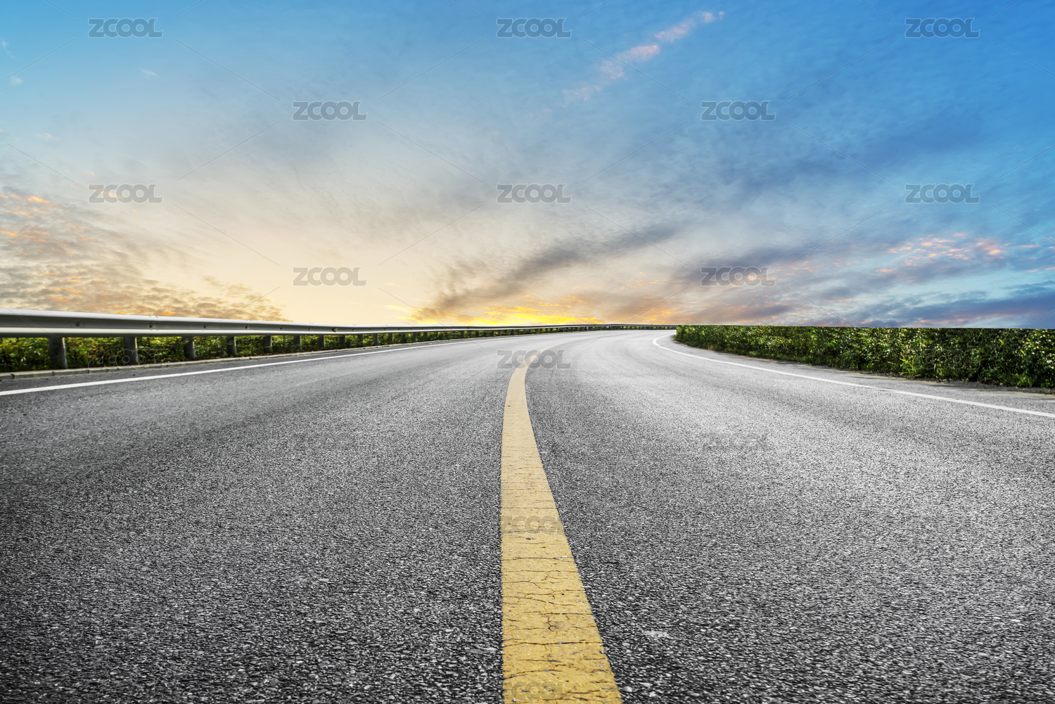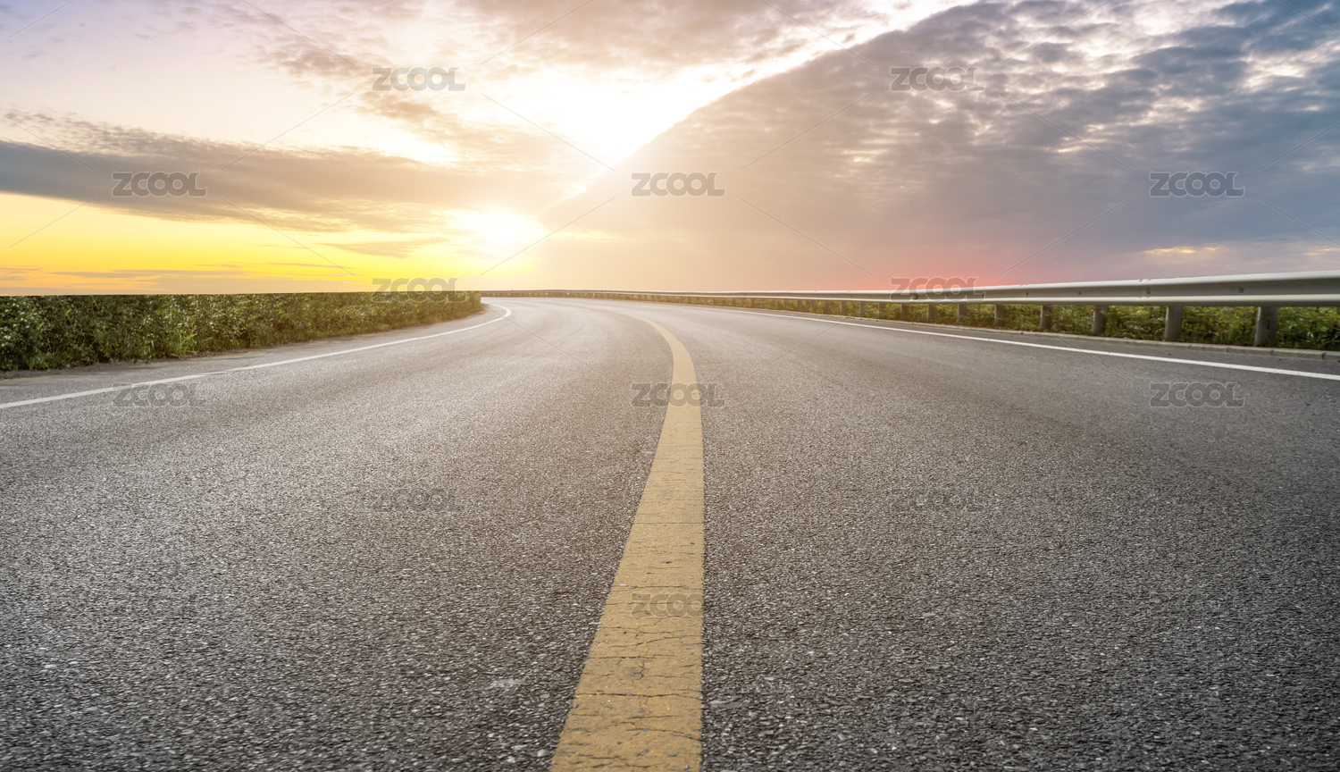 沥青路面天际线和天空晚霞云彩