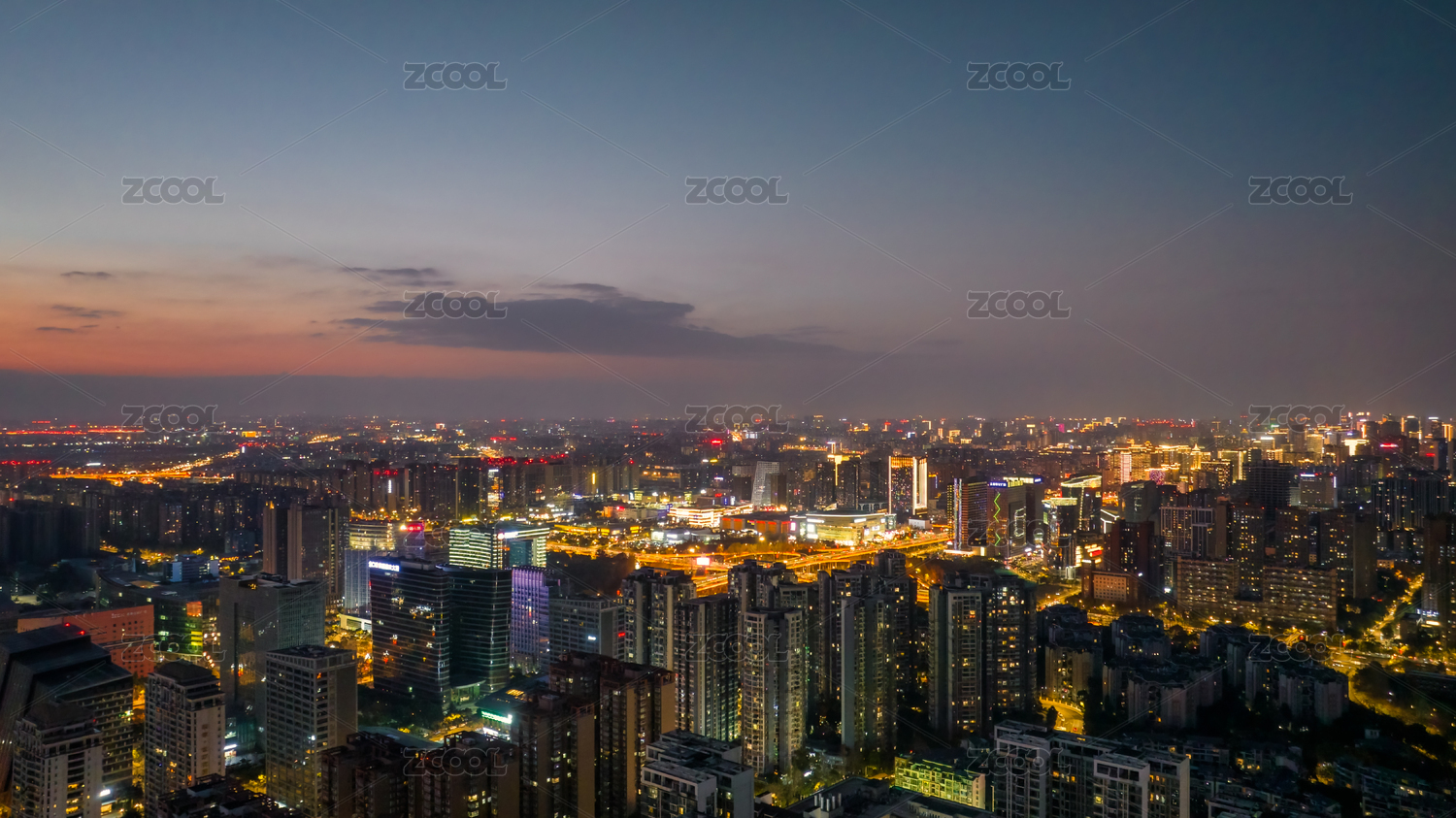 夜景,航拍,鸟瞰,高视角,写字楼,办公楼,背景,玻璃,城市,大厦