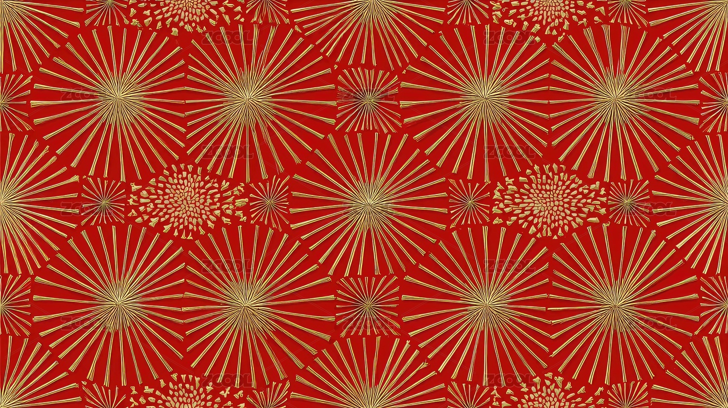 金色放射图案红色背景装饰