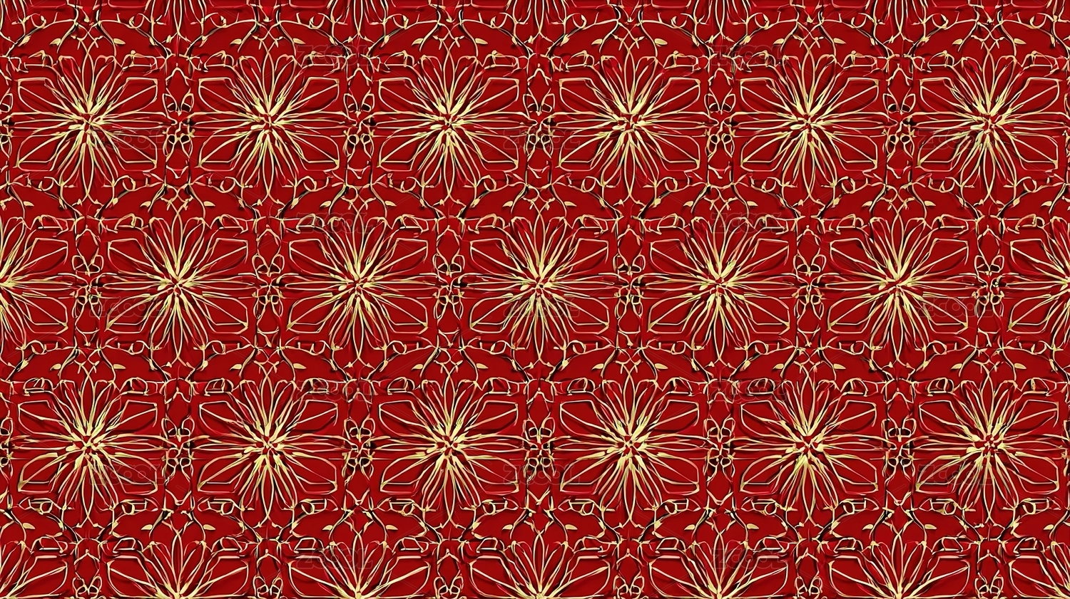 红色背景上金色花朵的重复图案