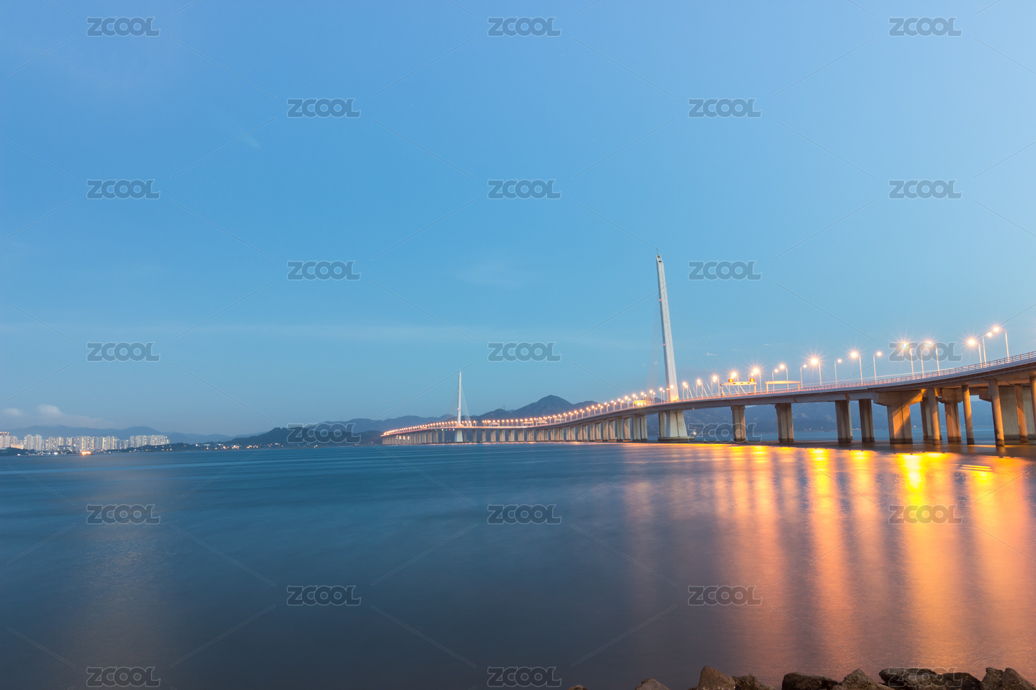 深圳湾大桥,深圳,深圳湾,地标性建筑,标志性建筑,户外,没有人,海面,倒影,建筑