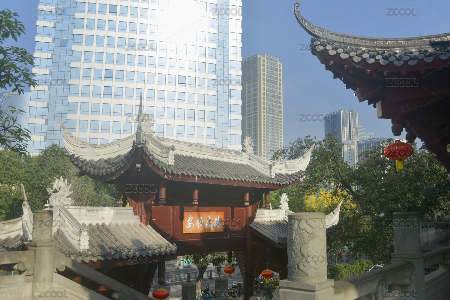 中国四川省成都市大慈寺古建筑及周边CBD现代建筑