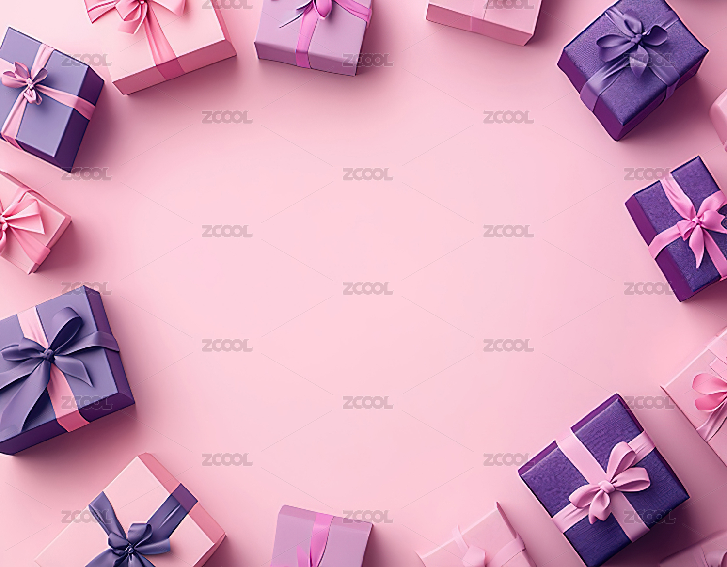 粉红色背景上的礼品盒和礼品盒的高角度视图