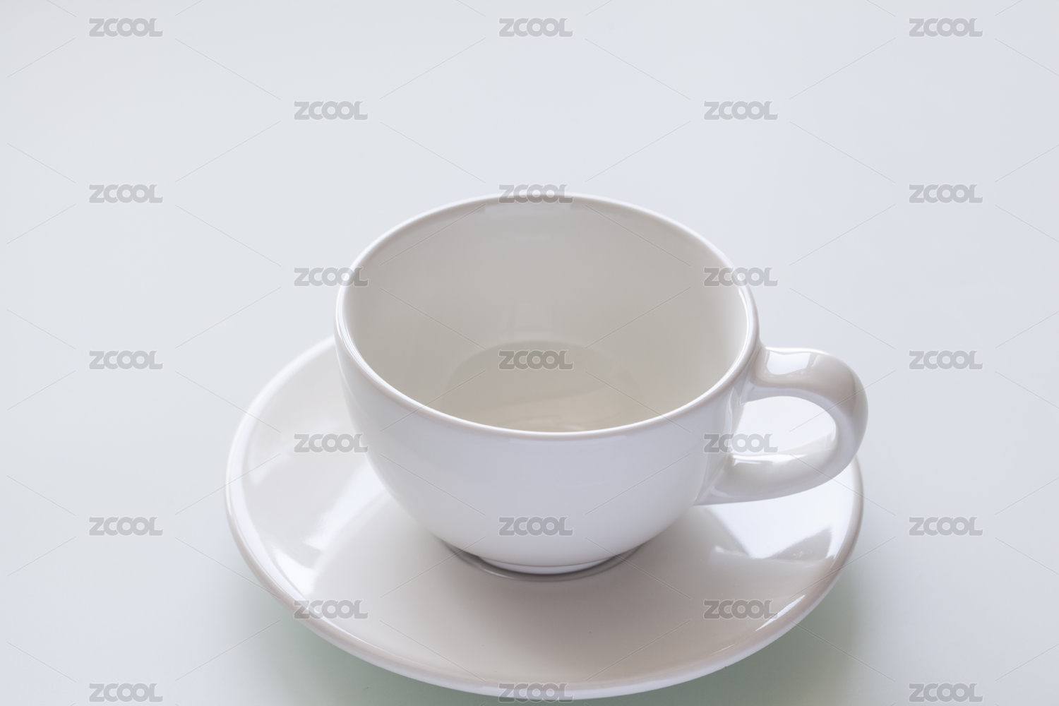 洁白无瑕的骨瓷咖啡杯和杯碟