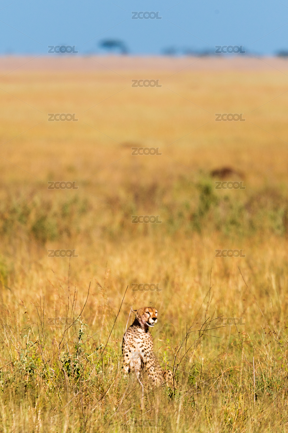 非洲肯尼亚马赛马拉草原上准备捕食的猎豹