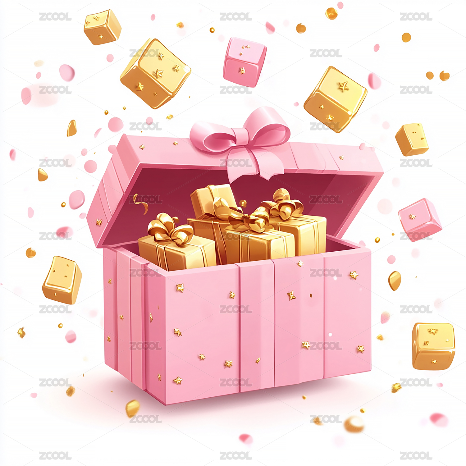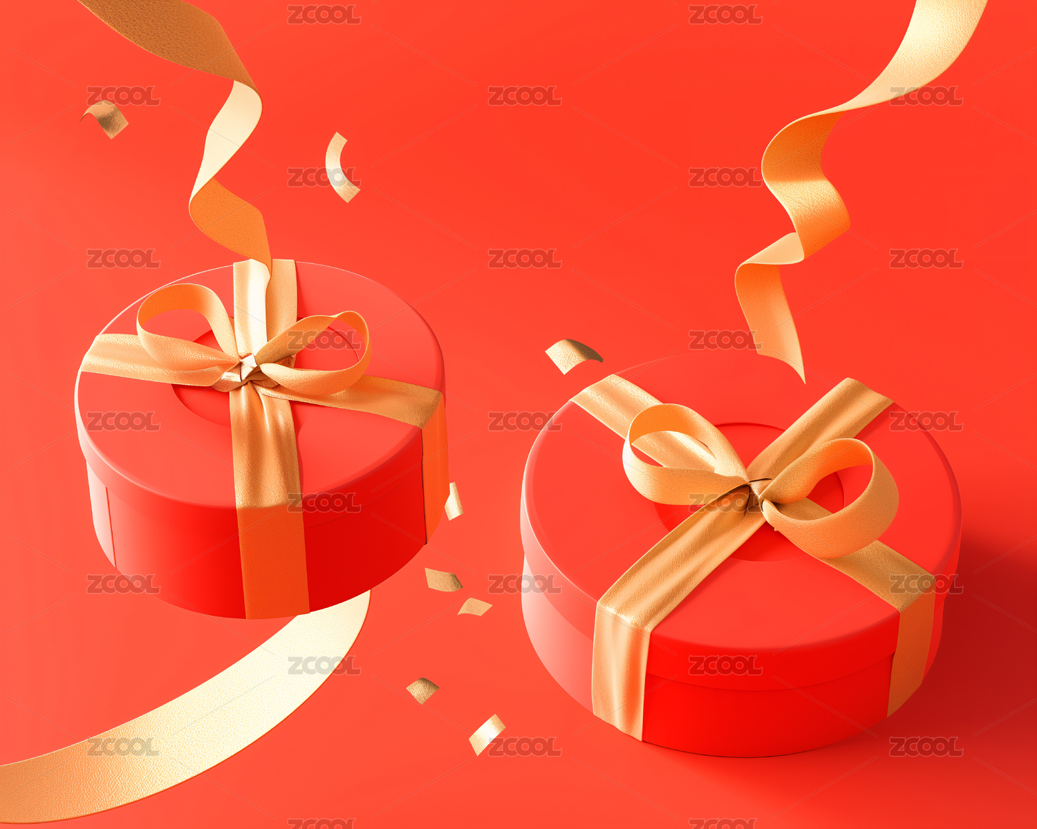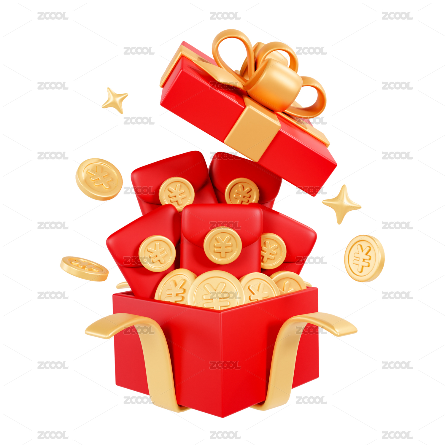礼盒,金币,红色,礼物,丝带,白底,3D