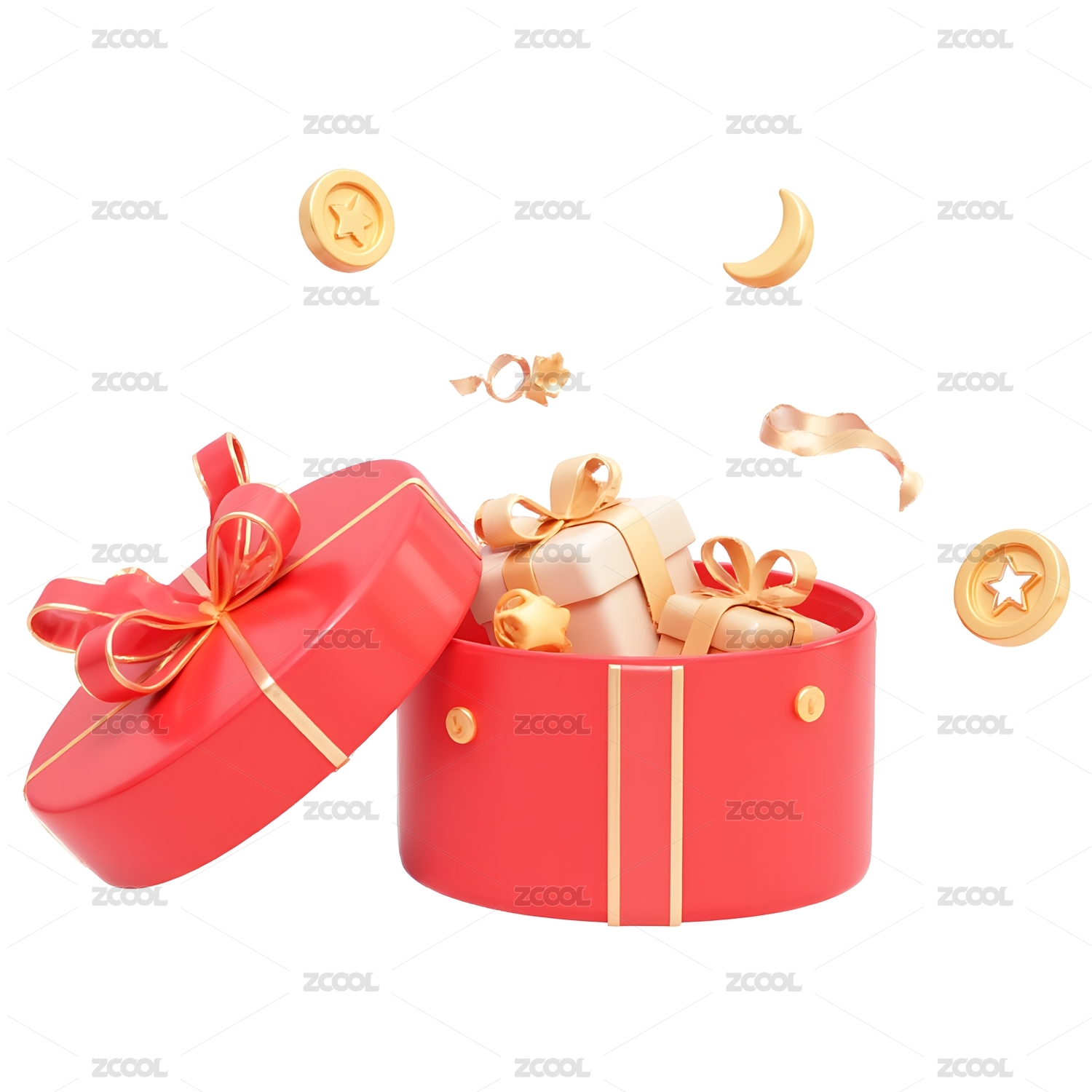 3D渲染的打开的圆形彩色礼盒促销电商购物