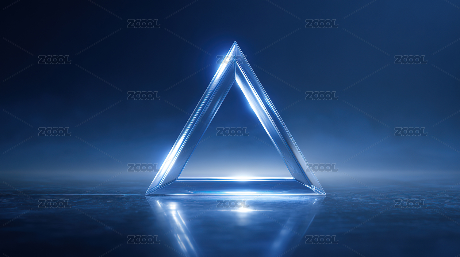 蓝色光芒中的透明三角形