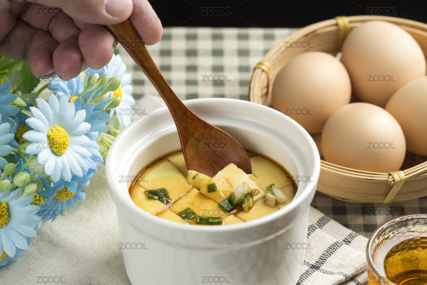 鸡蛋羹,蛋羹,蒸蛋羹,勺盛鸡蛋羹,浇酱油,Eggsoup,一碗,一盅,勺盛,鸡蛋