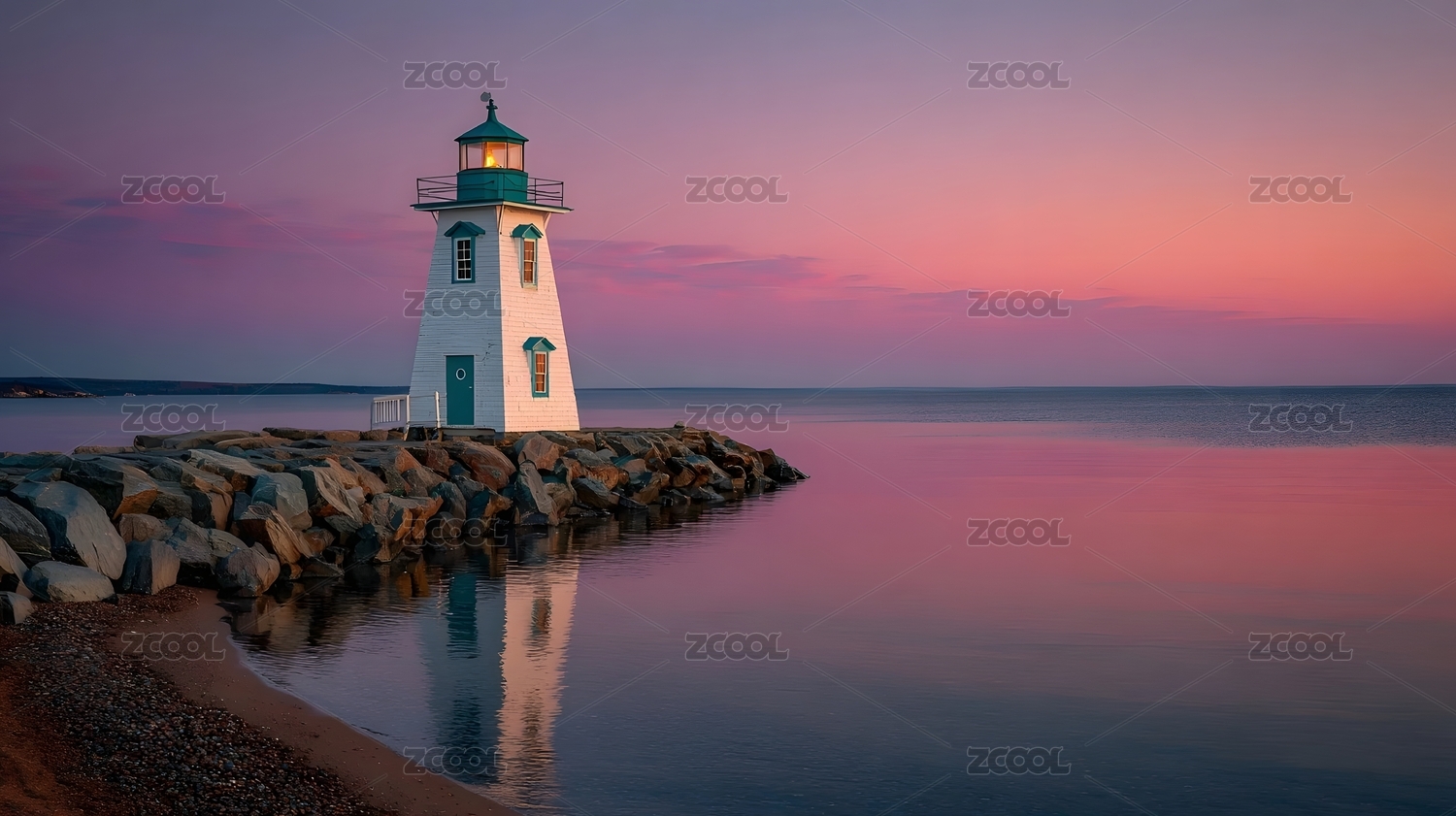 俄罗斯符拉迪沃斯托克旅游地标建筑海上灯塔的日落风光